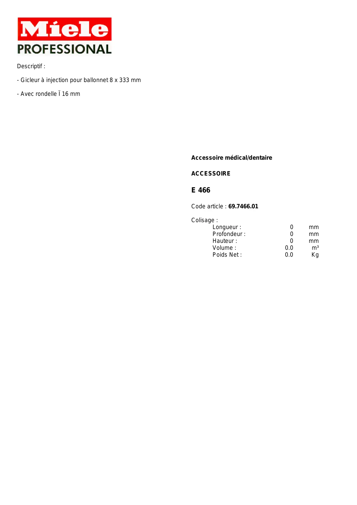E 466 DESCRIPTIF - Matériel médical MIELE - Notice d'utilisation et mode d'emploi gratuit