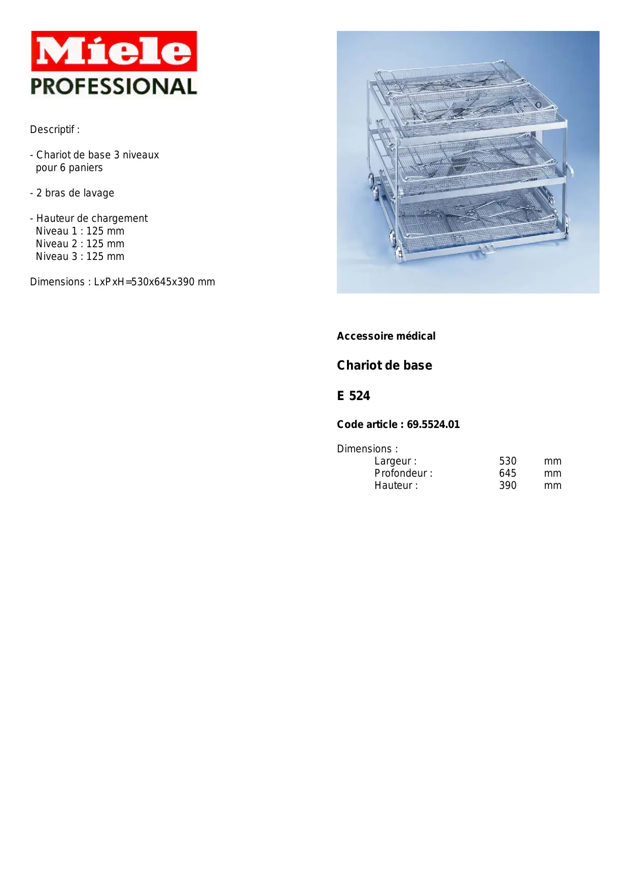 E 524 DESCRIPTIF - Matériel médical MIELE - Notice d'utilisation et mode d'emploi gratuit
