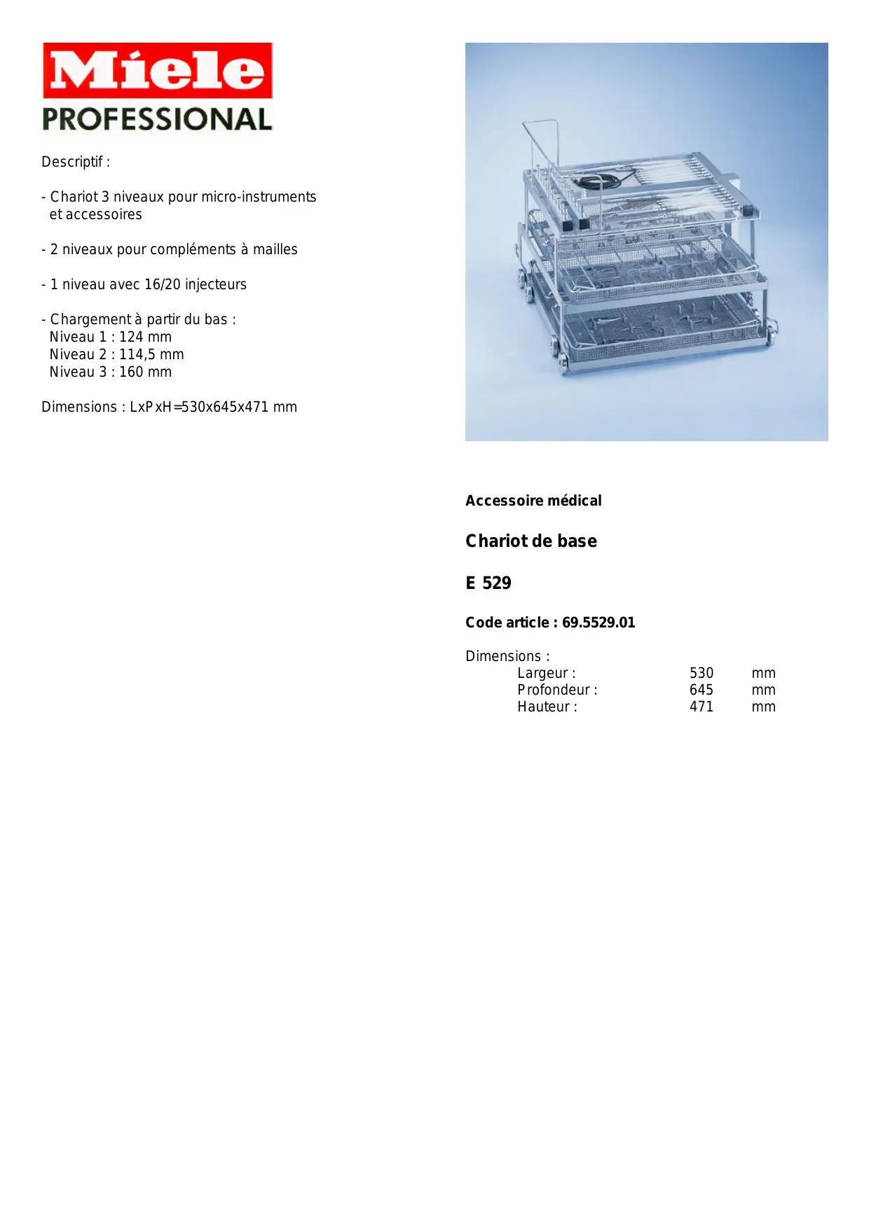 E 529 DESCRIPTIF - Matériel médical MIELE - Notice d'utilisation et mode d'emploi gratuit