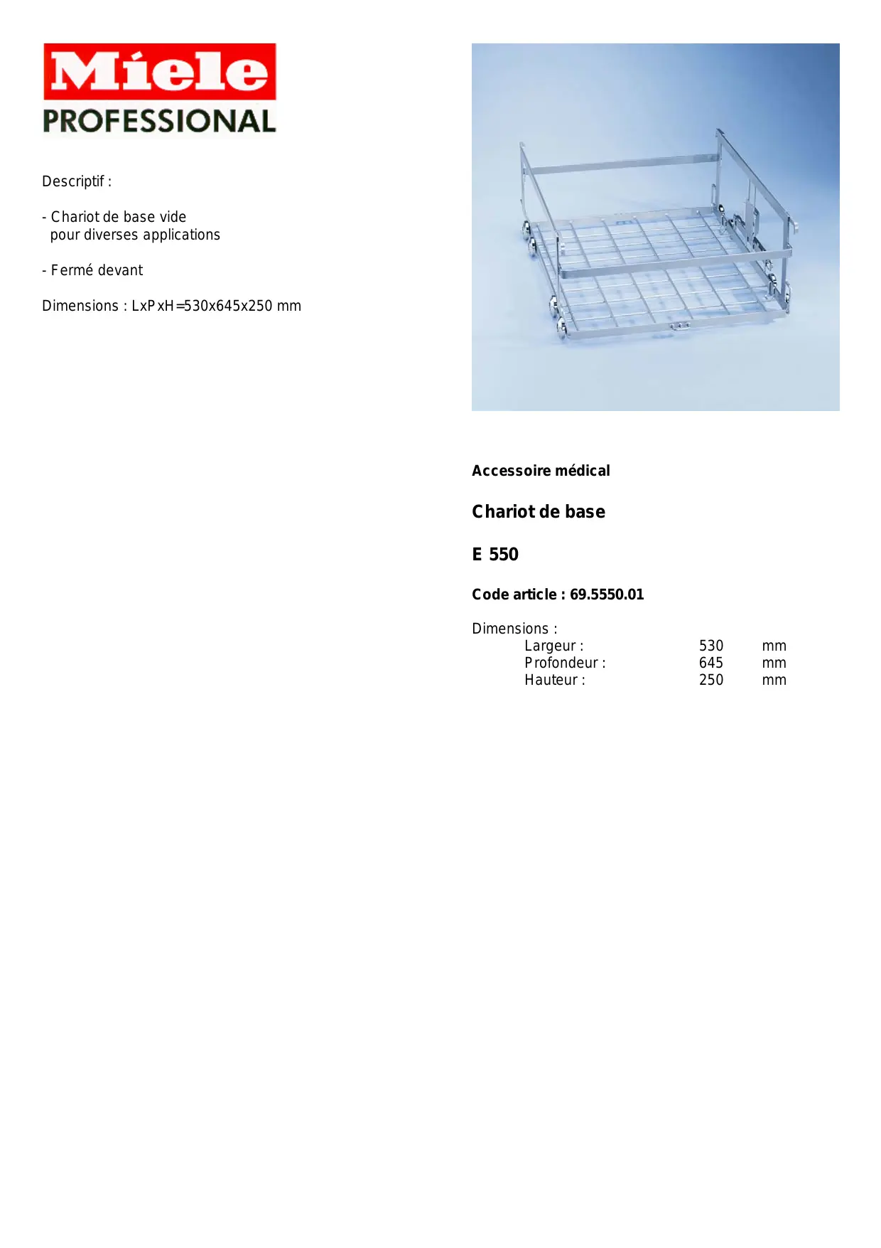 E 550 DESCRIPTIF - Chariot MIELE - Notice d'utilisation et mode d'emploi gratuit