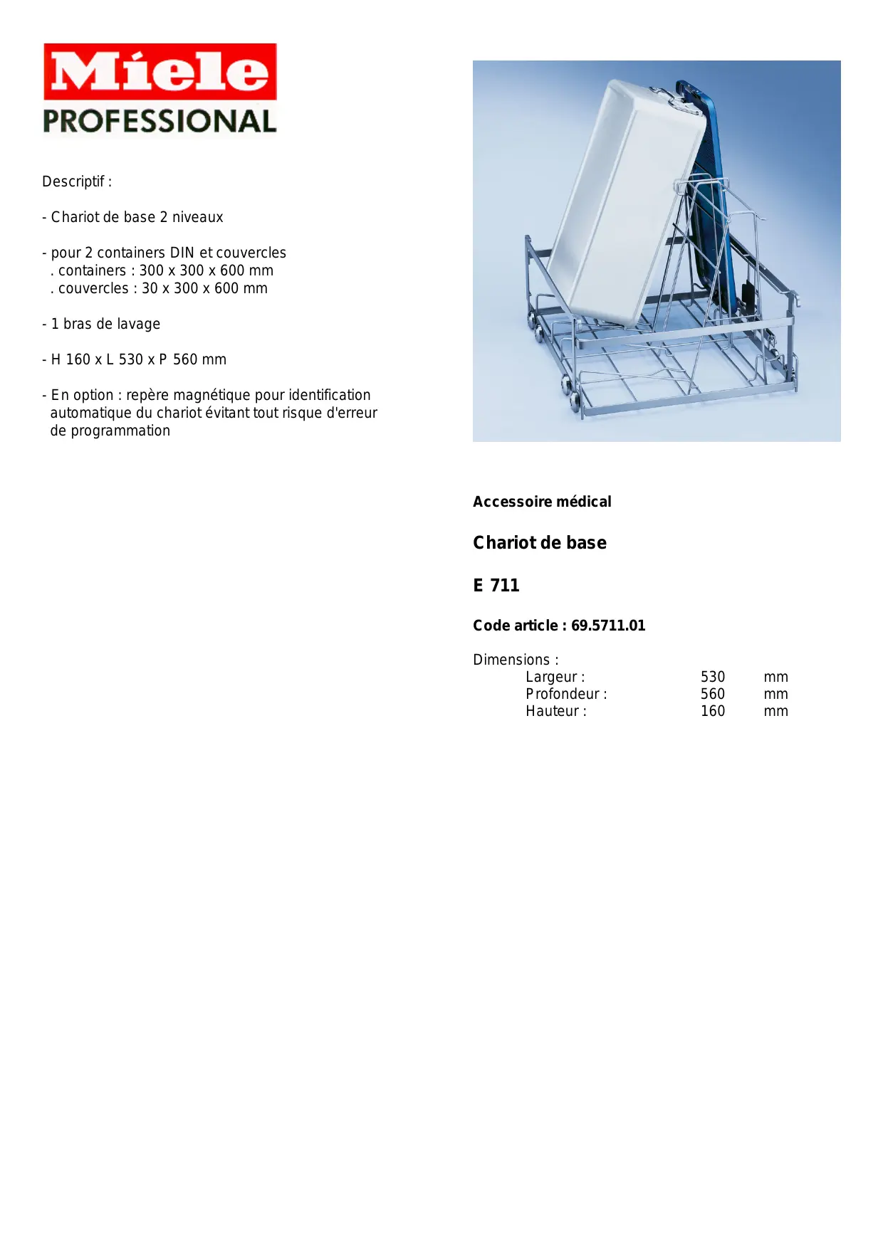 E 711 DESCRIPTIF - Chariot médical MIELE - Notice d'utilisation et mode d'emploi gratuit