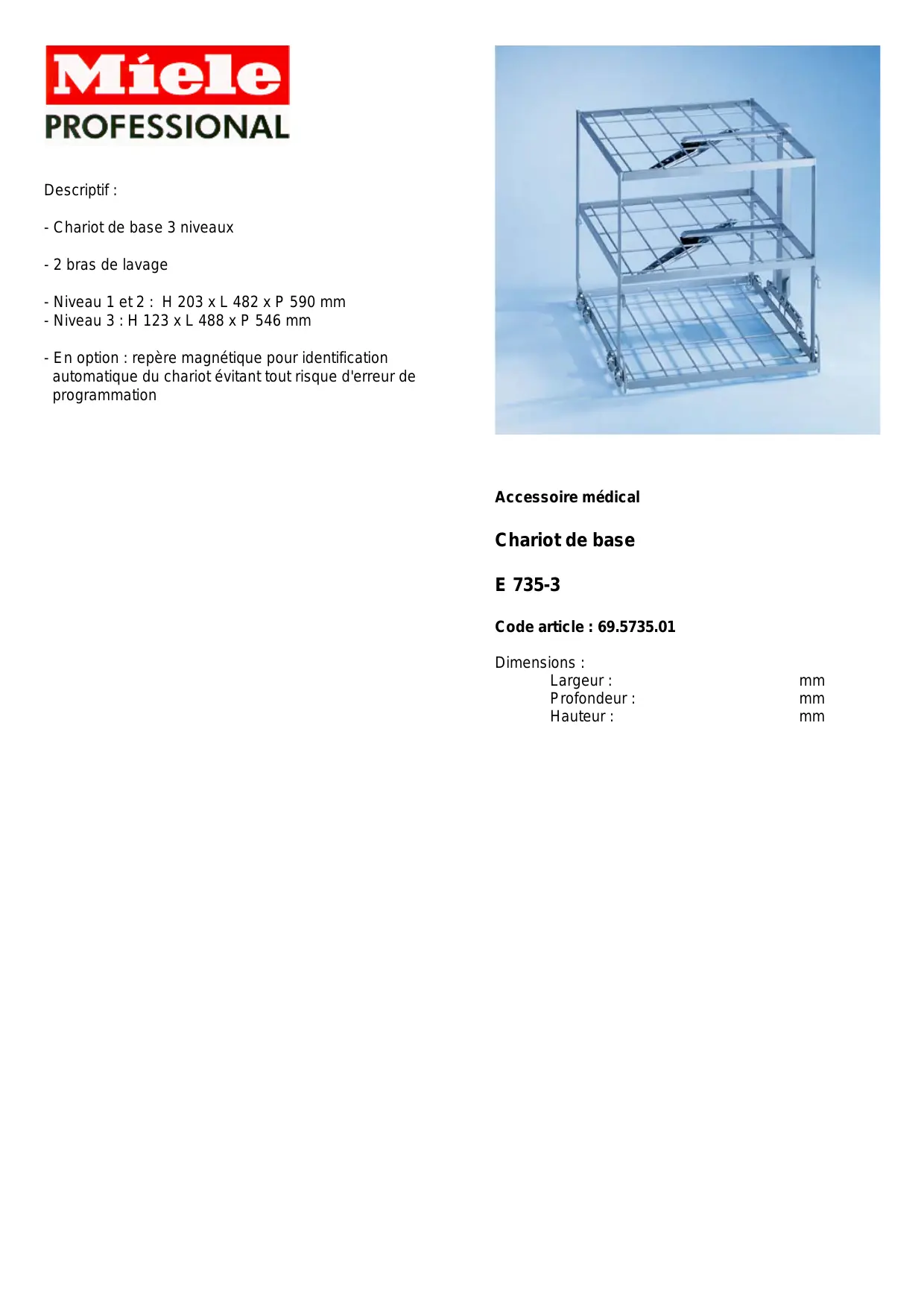 E 735-3 DESCRIPTIF - Matériel médical MIELE - Notice d'utilisation et mode d'emploi gratuit