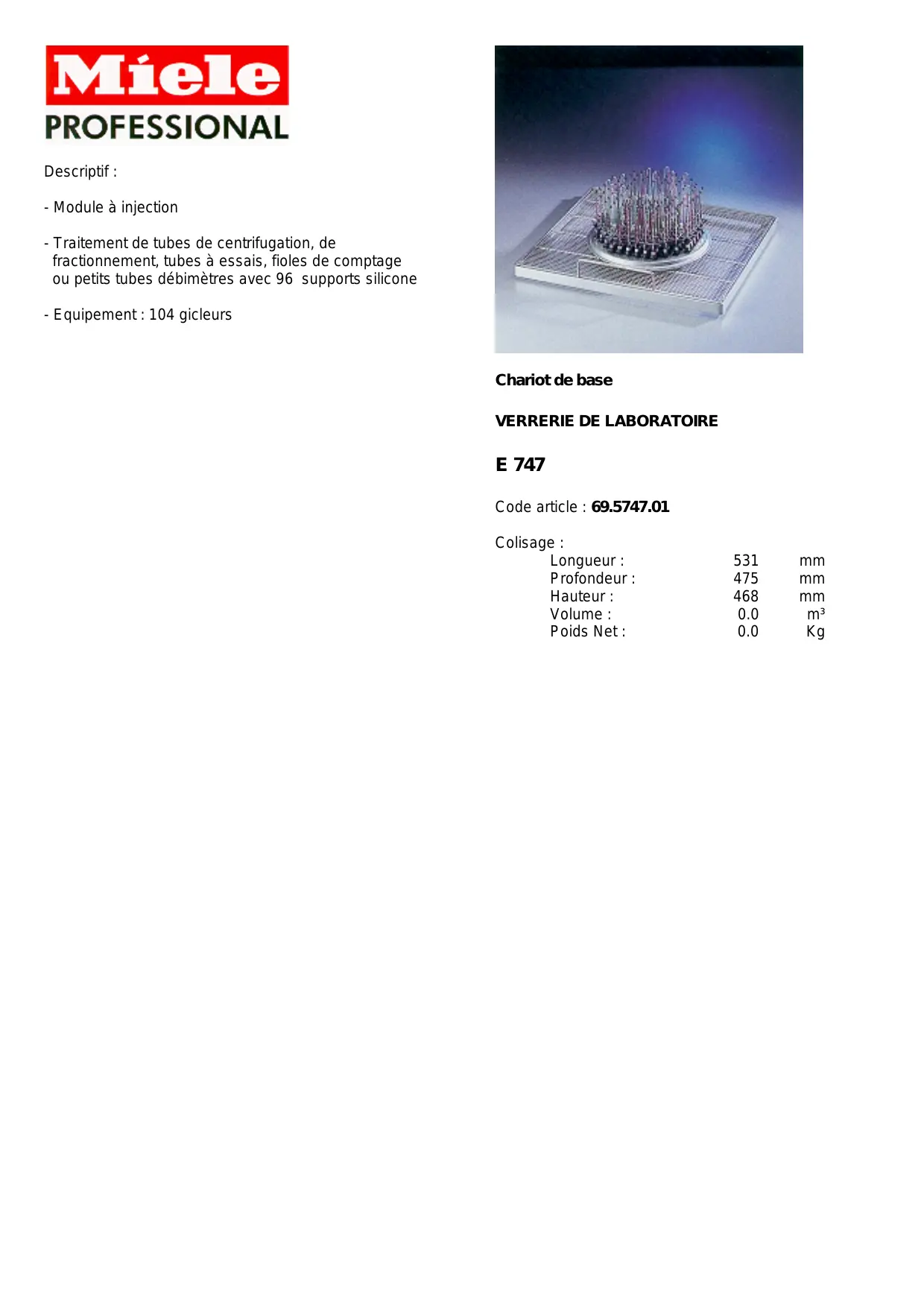 E 747 DESCRIPTIF - Matériel de laboratoire MIELE - Notice d'utilisation et mode d'emploi gratuit
