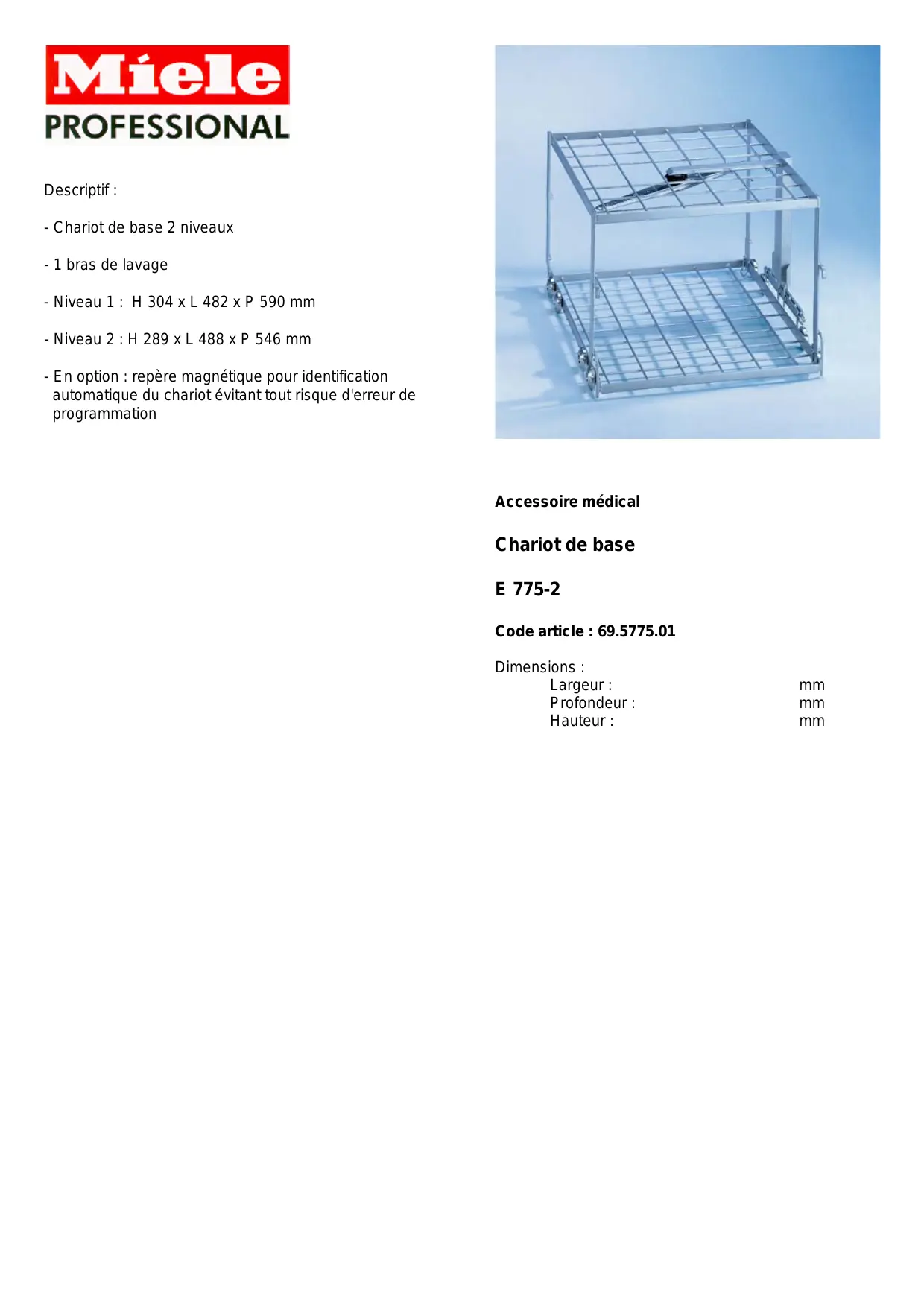 E 775-2 DESCRIPTIF - Matériel médical MIELE - Notice d'utilisation et mode d'emploi gratuit