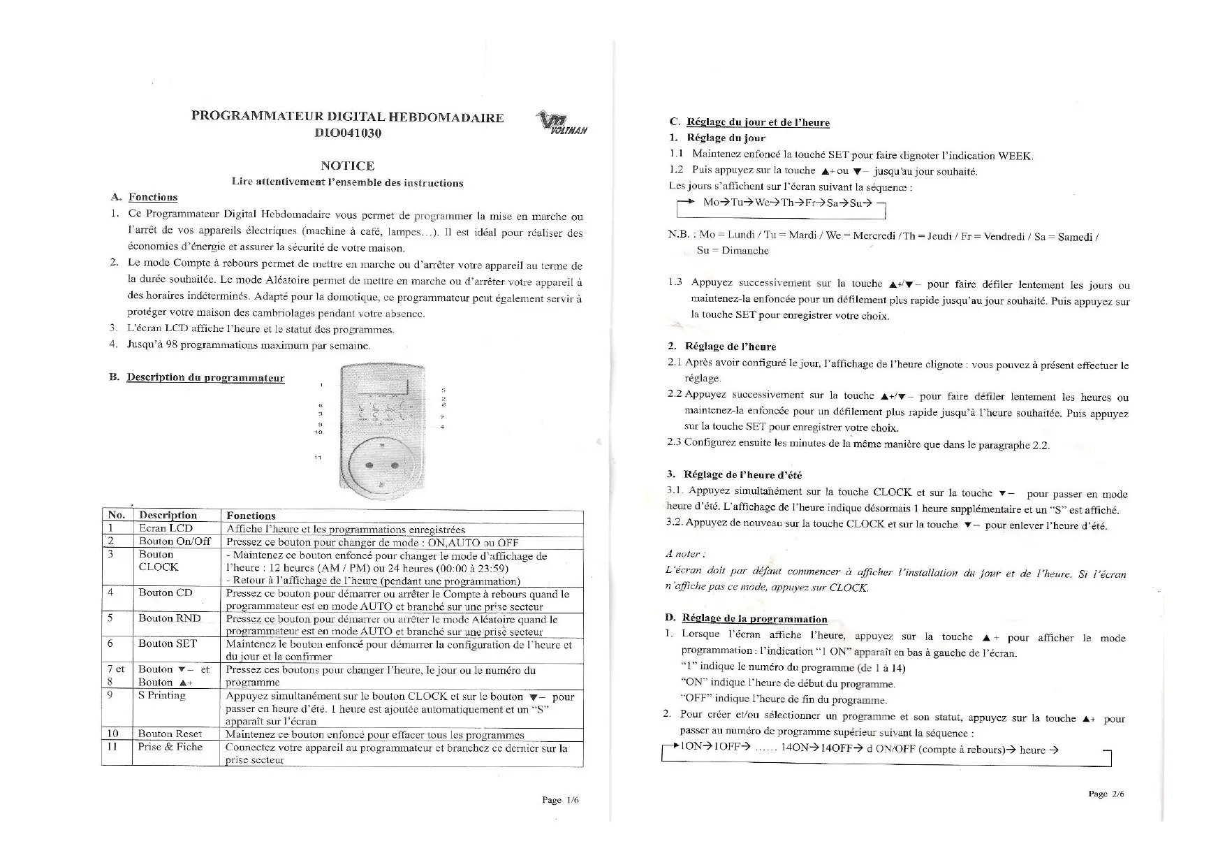 DIO041030 - Programmateur électronique VOLTMAN - Notice d'utilisation et mode d'emploi gratuit