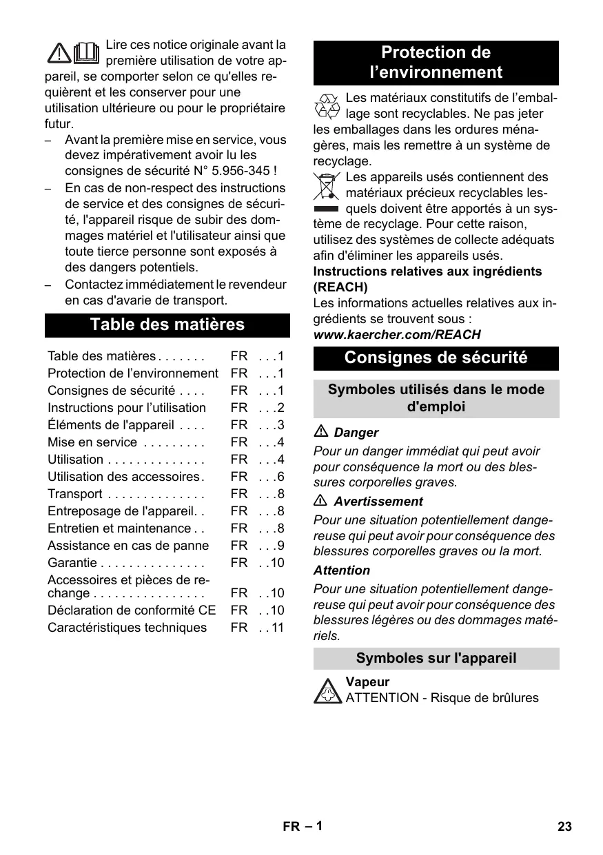 Avant de remettre l'appareil en service, s'adresser au service après-venture KÄRCHER responsable.