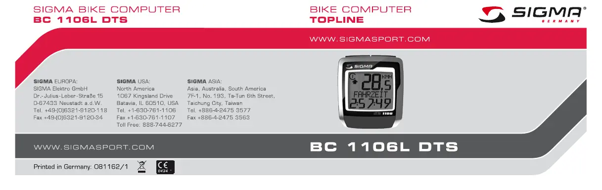 BC 1106L DTS - Compteur de vélo SIGMA SPORT - Notice d'utilisation et mode d'emploi gratuit