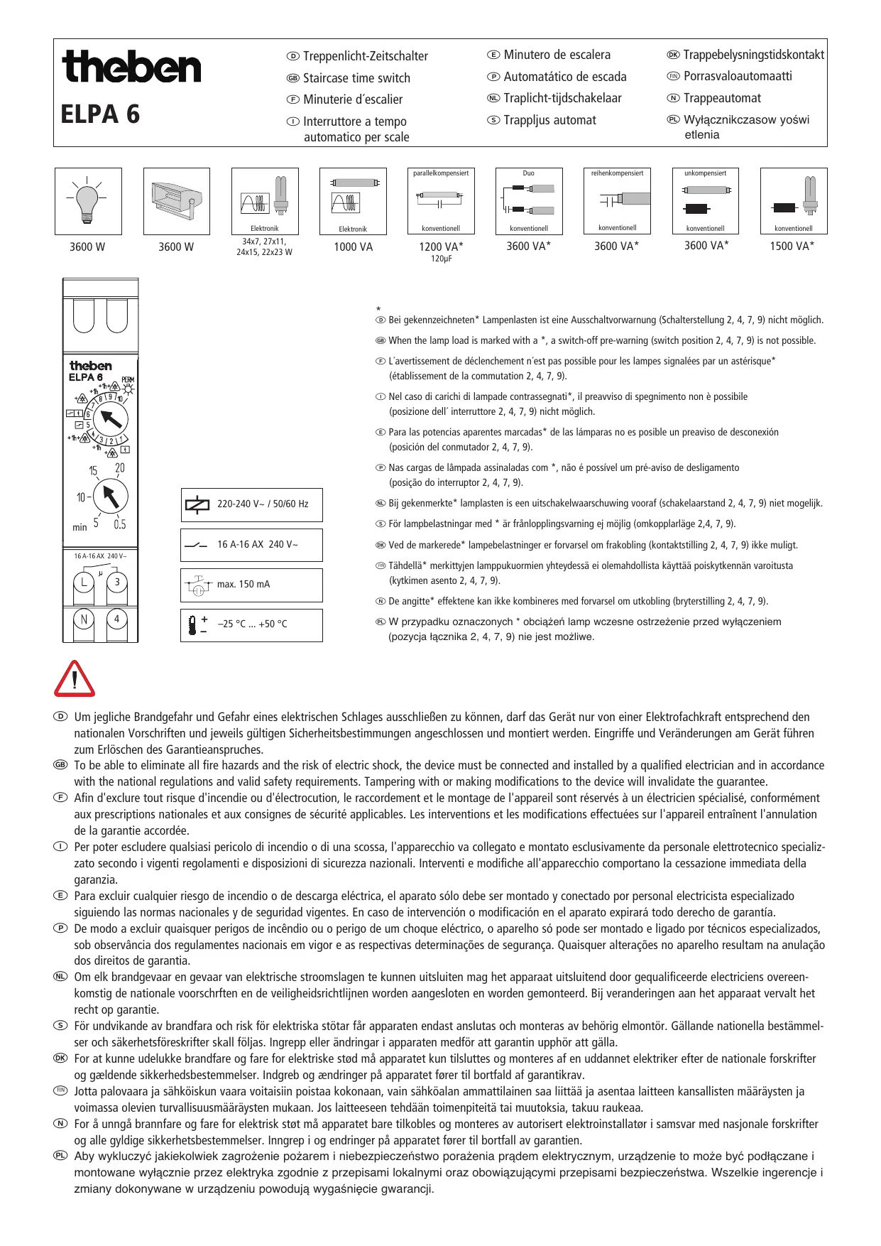 ELPA 6 - Minuteur électrique THEBEN - Notice d'utilisation et mode d'emploi gratuit