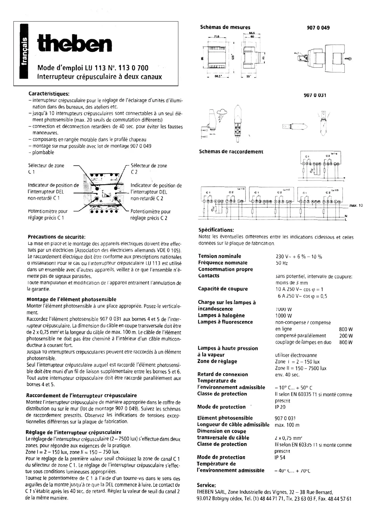 Retrouvez gratuitement la notice de l'appareil LU 113 THEBEN au format PDF.