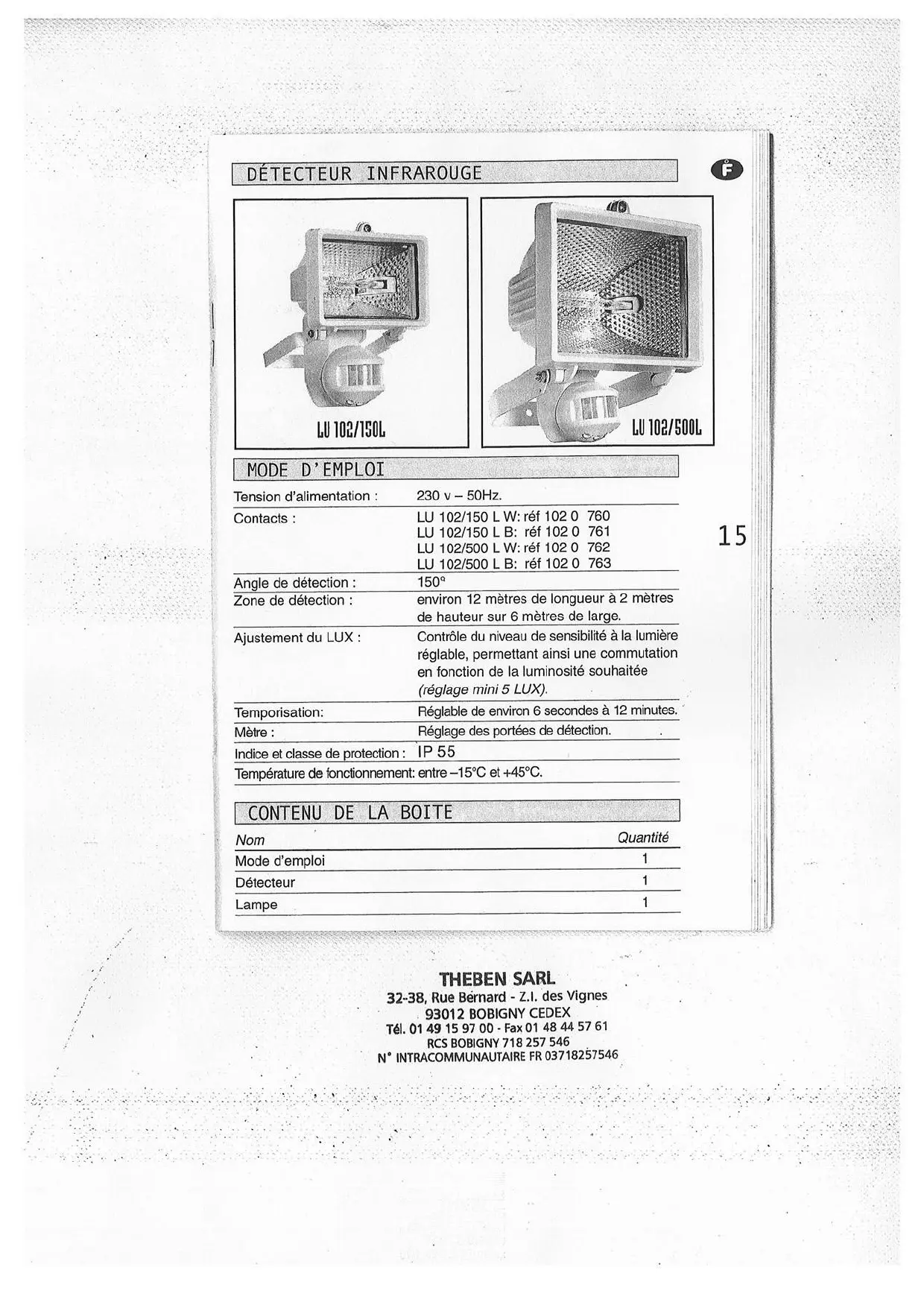 LUNA 102-150L - Détecteur infrarouge THEBEN - Notice d'utilisation et mode d'emploi gratuit
