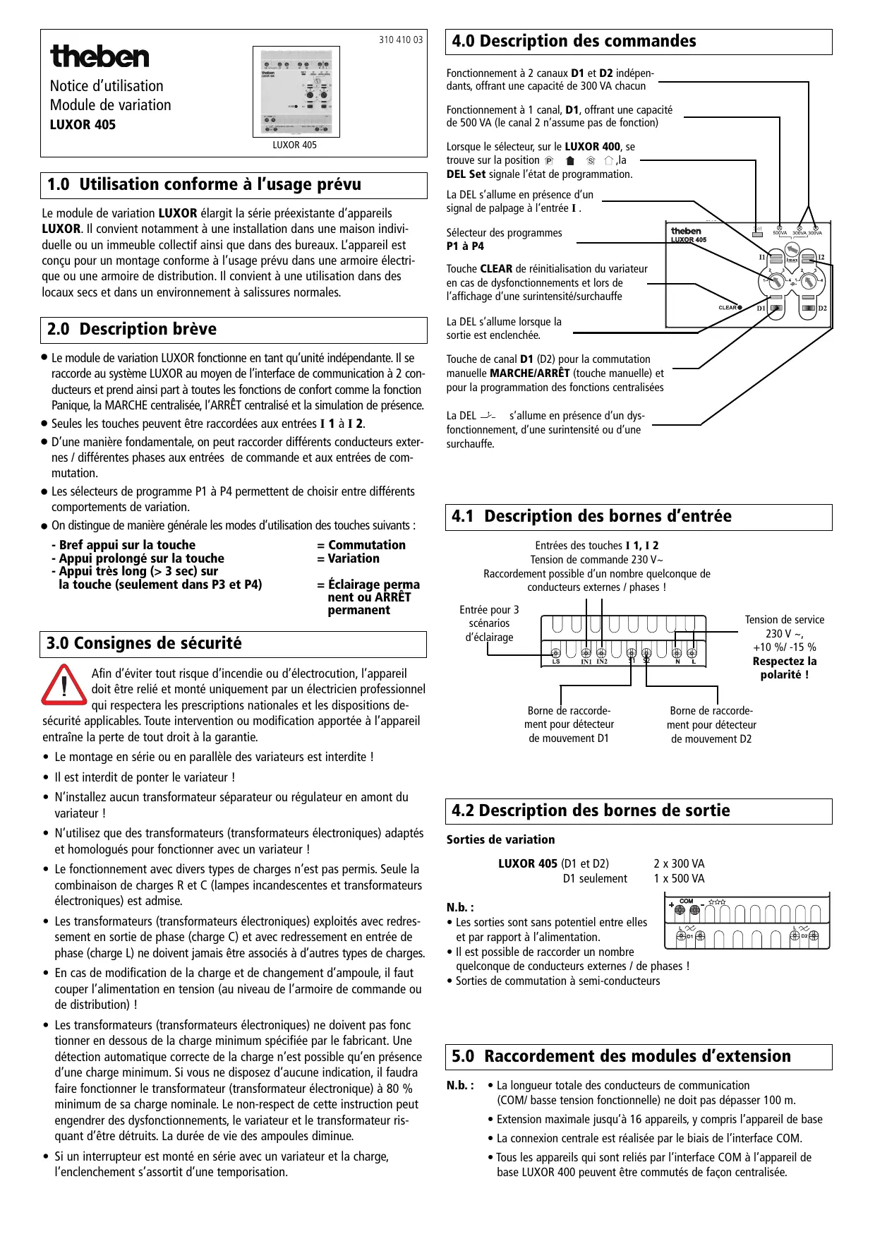 LUXOR 405 - Module de variation électrique THEBEN - Notice d'utilisation et mode d'emploi gratuit