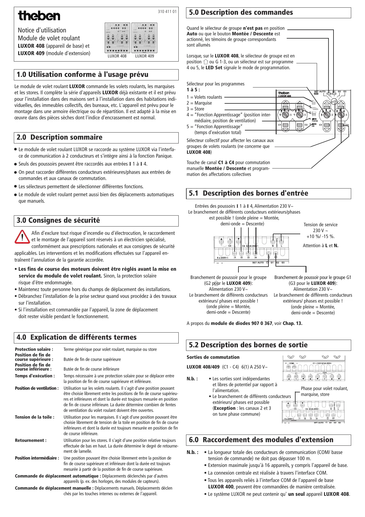 Retrouvez gratuitement la notice de l'appareil LUXOR 408 THEBEN au format PDF.