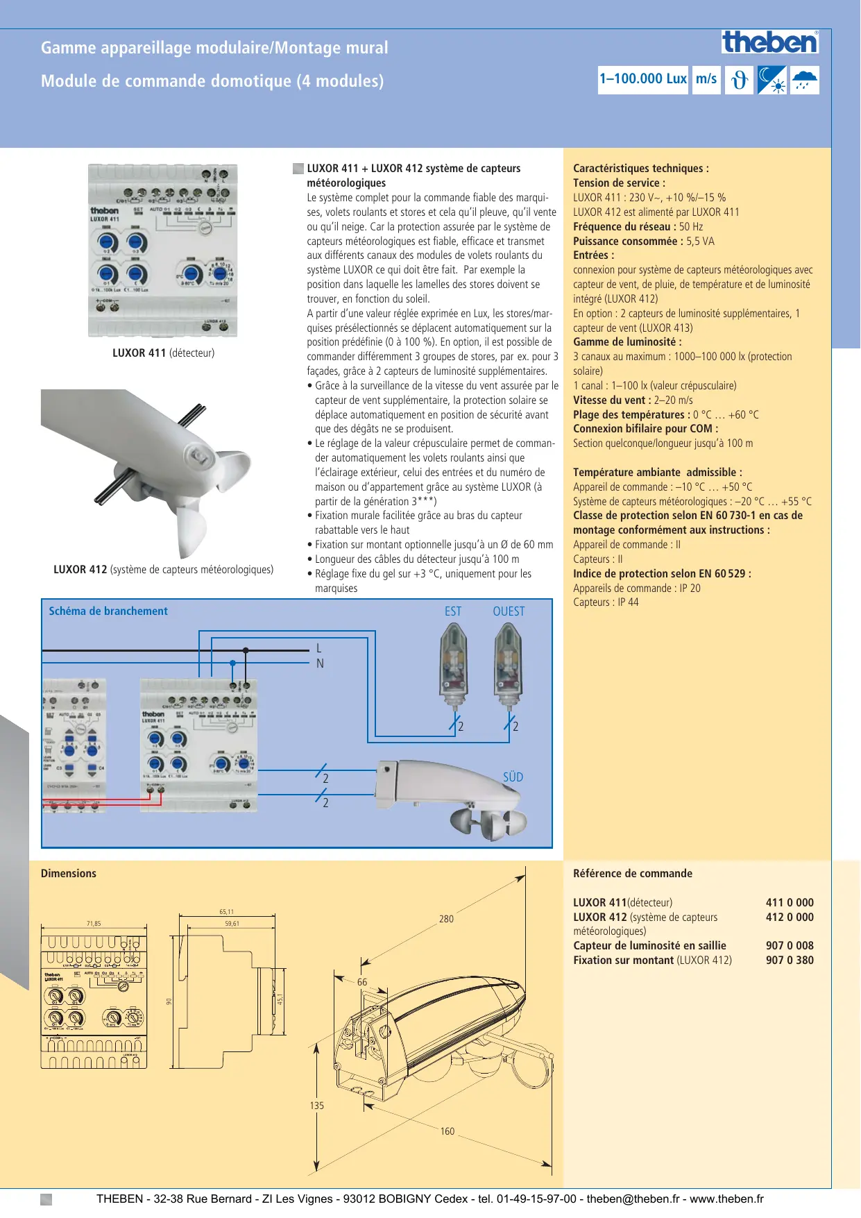 - Le réglage de la valeur crépusculaire permet de commander automatiquement les volets roulants ainsi que l'éclairage extérieur, celui des entrées et du nombre de maison ou d'appartement grâce au système LUXOR (à partir de la génération). Fixation murale facilitée grâce au bras du capteur rabattable vers le haut. Fixation sur montant optionnelle jusqu'à un Ø de 60 mm.