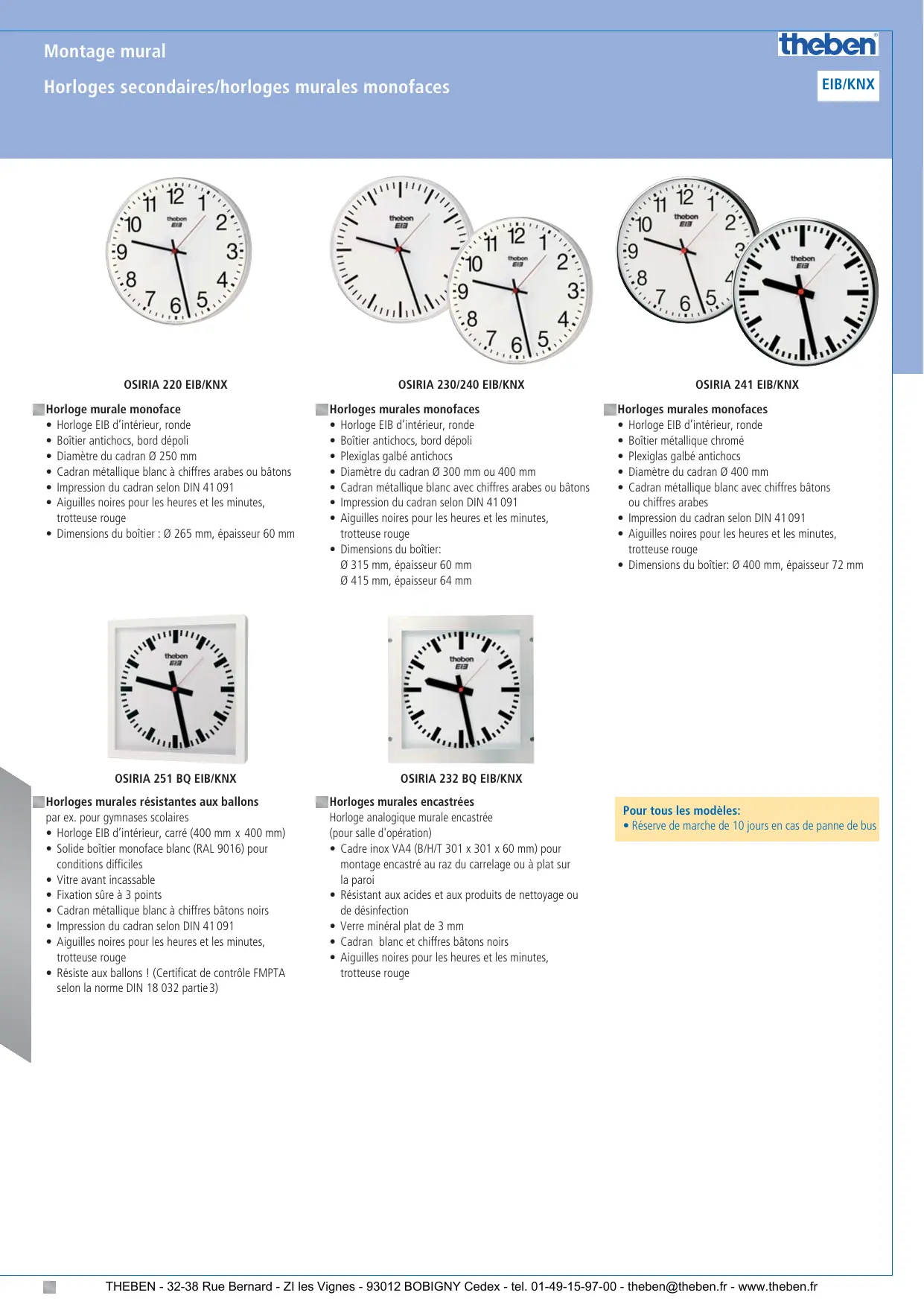 Autres modèles sur demand. THEBEN - 32-38 Rue Bernard - ZI les Vignes - 93012 BOBIGNY Cedex - tel. 01-49-15-97-00 - theben@theben.fr - www.theben.fr