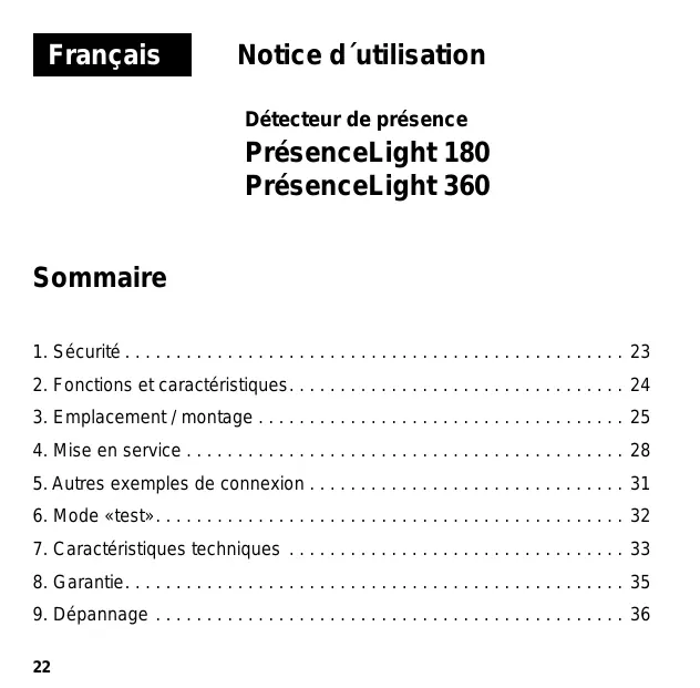 Détecteur de présence PrésenceLight 180 PrésenceLight 360 Art. Nr. 200 0 050