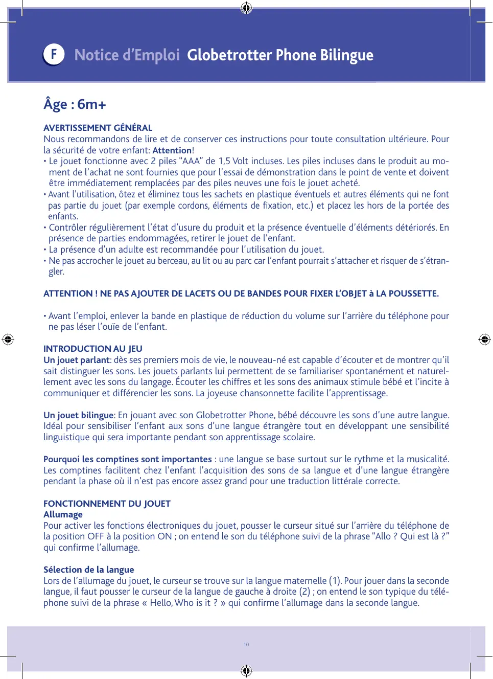 F Notice d’Emploi Globetrotter Phone Bilingue