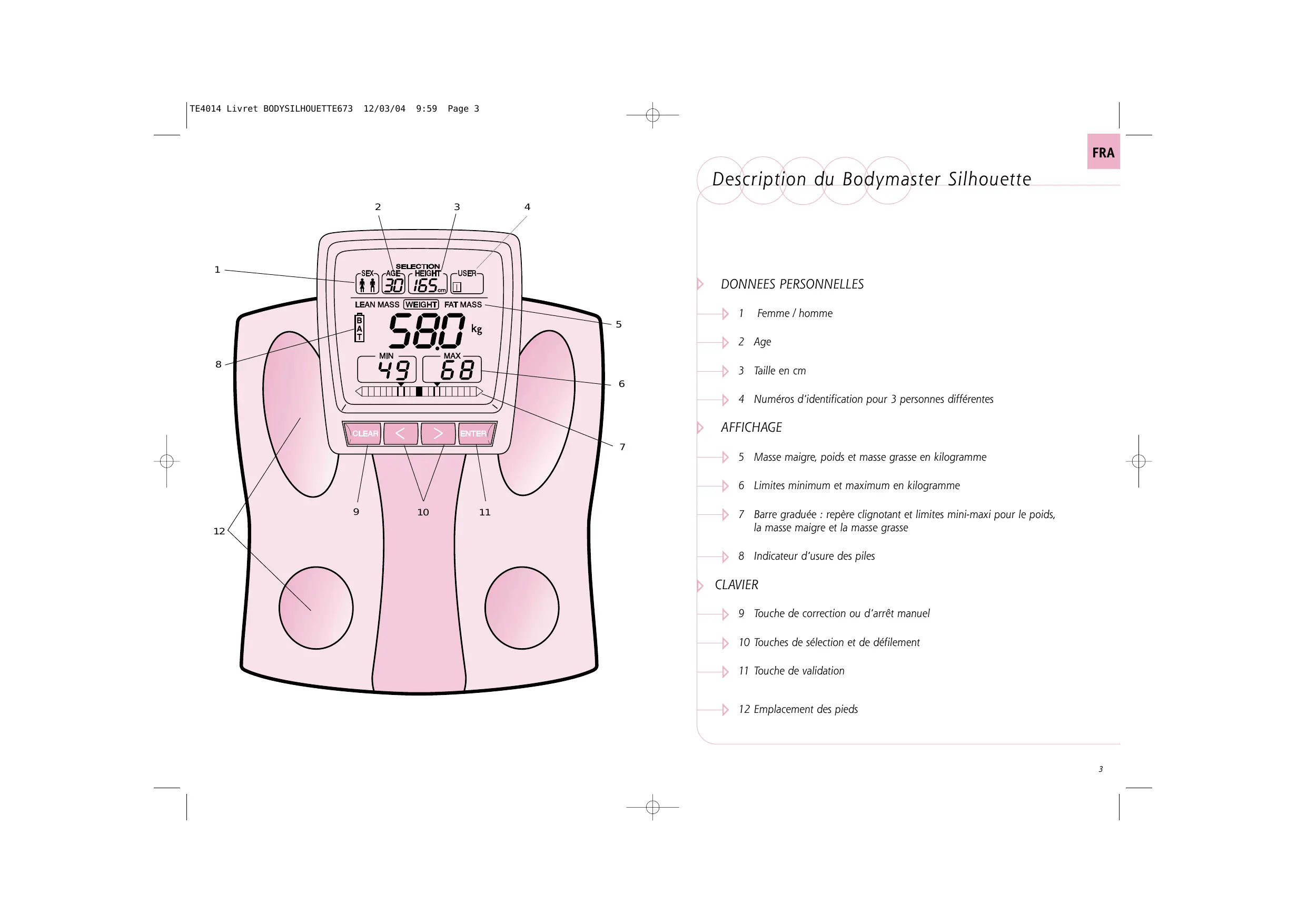 | Fonction supplémentaire | Mesure de la masse grasse corporelle |