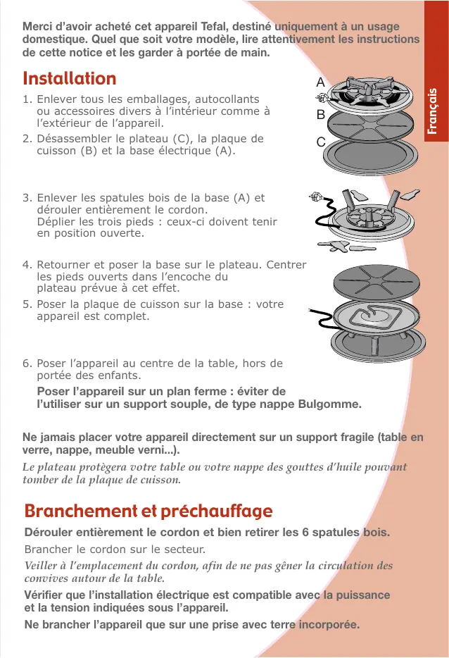 RACLETTE - Appareil de cuisine TEFAL - Notice d'utilisation et mode d'emploi gratuit