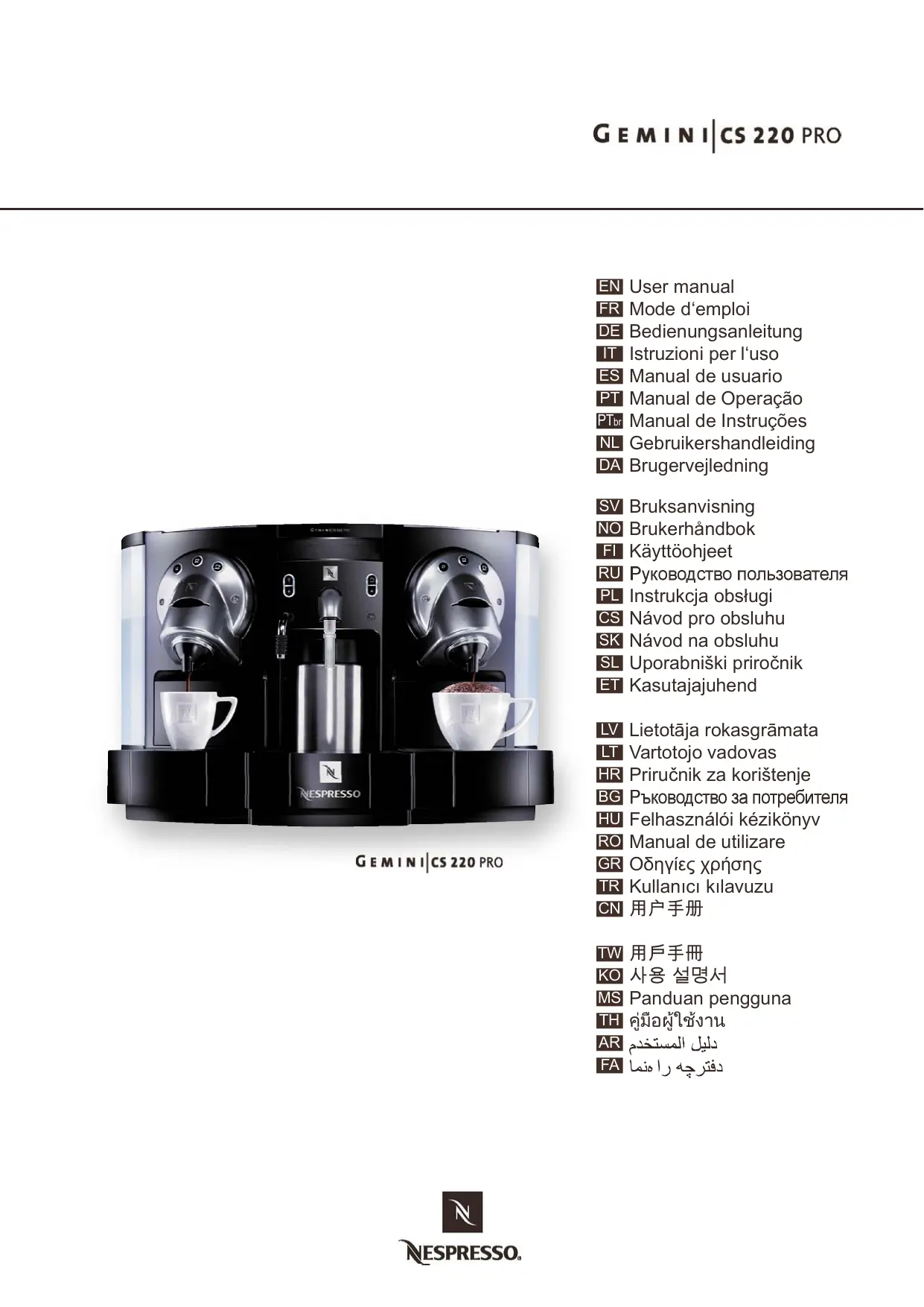 Retrouvez gratuitement la notice de l'appareil GEMINI CS 220 PRO NESPRESSO au format PDF.