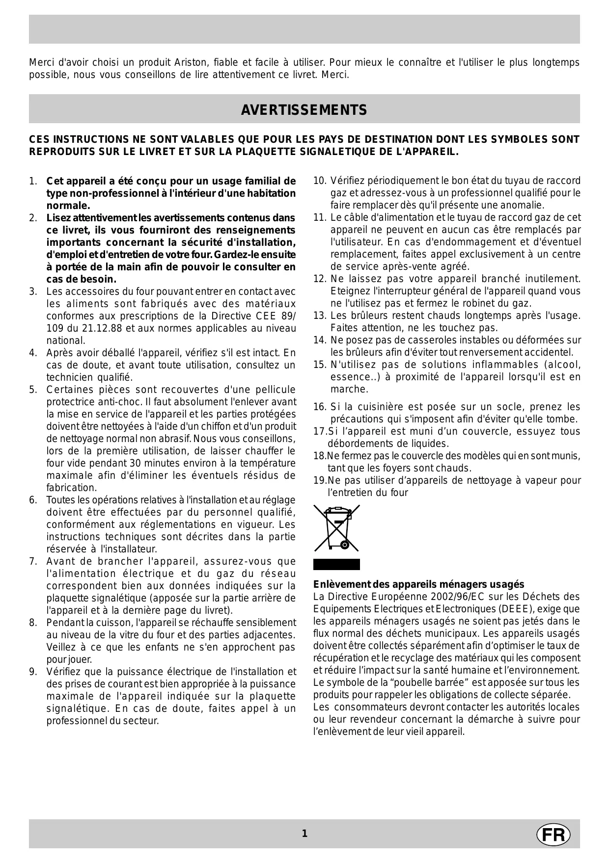 Merci d'avoir choisi un produit Ariston, fiable et facile à utiliser. Pour mieux le connaître et l'utiliser le plus longtemps possible, nous vous conseillons de lire attentivement ce livret. Merci.