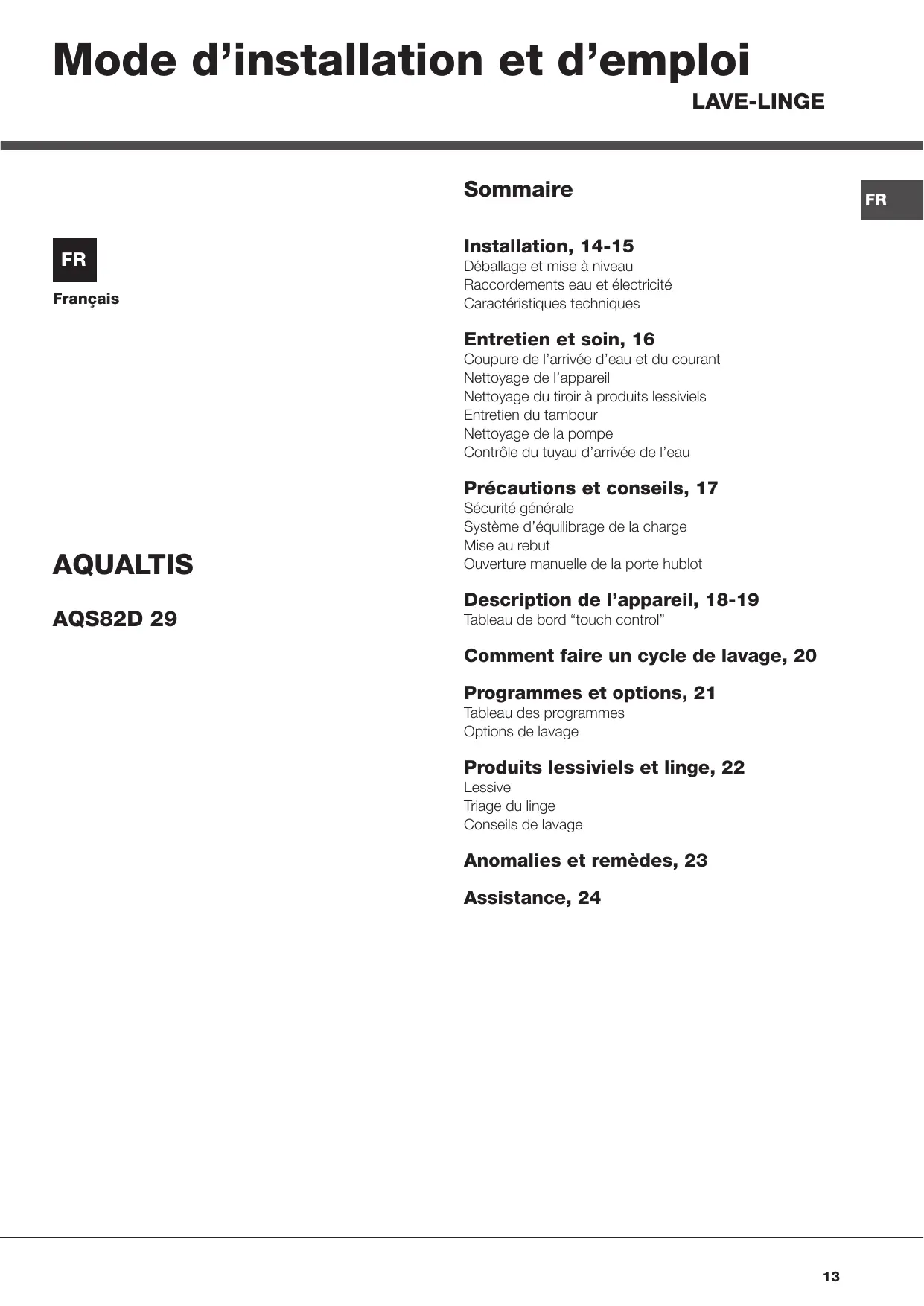 LAVE-LINGE Sommaire FR Français