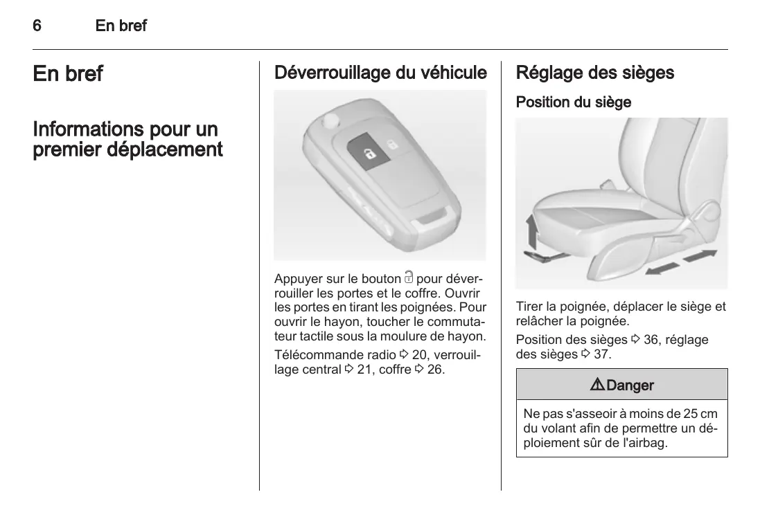 Ne pas s'asseoir à moins de 25 cm du volant afin de permettre un déploiation sur de l'airbag.