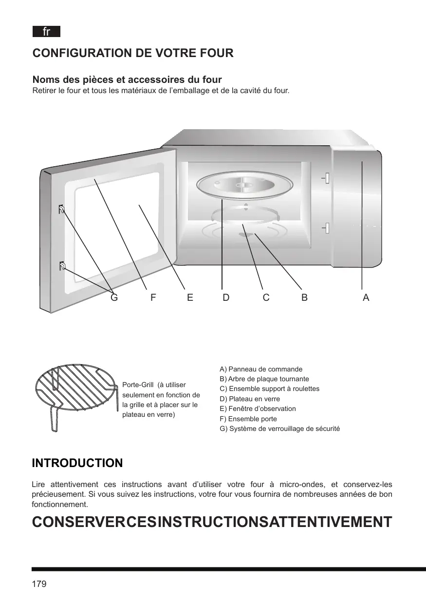 INTRODUCTION Lire attentivement ces instructions avant d’utiliser votre four à micro-ondes, et conservez-les précieusement. Si vous suivez les instructions, votre four vous fournira de nombreuses années de bon fonctionnement.