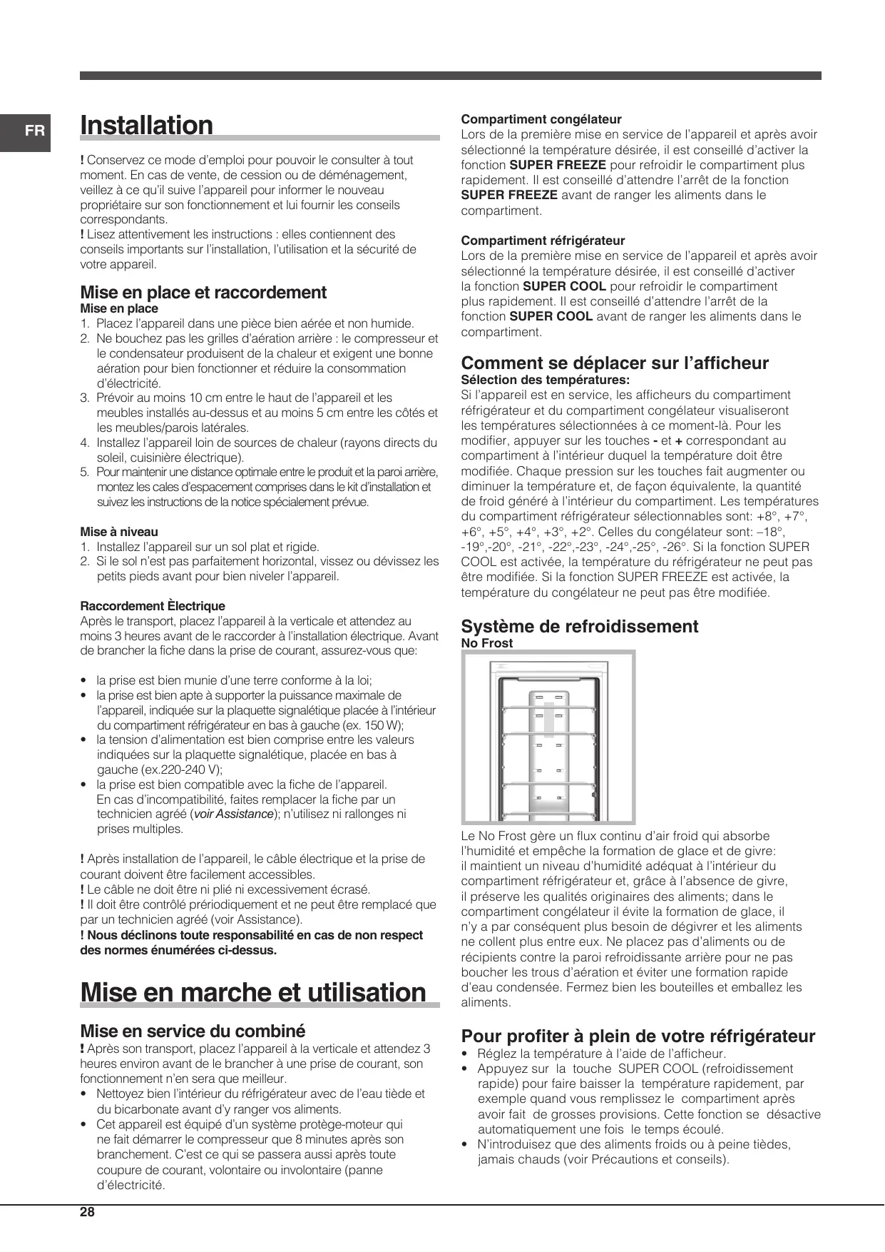 ! Si la température ambiente se maintain longuement audessous de 14^ , le compartment freezer n'arrive pas à atteindre les Températures indispensablees à une longue conservation et la période de conservation sera par conséquent réduite.