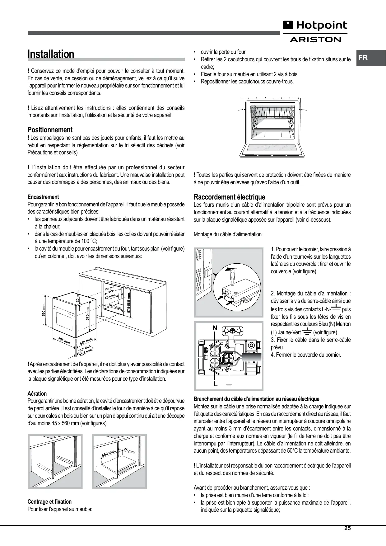 FK 83 0 X/HA S - Four encastrable HOTPOINT - Notice d'utilisation et mode d'emploi gratuit
