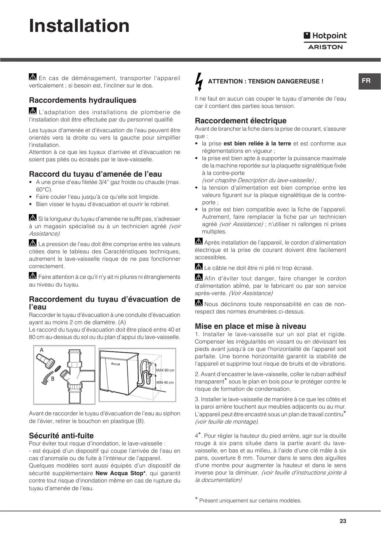 60°C). • Faire couler l'eau jusqu'à ce qu'elle soit limpide. 80 cm au-dessus du sol ou du plan d’appui du lave-vaisselle.