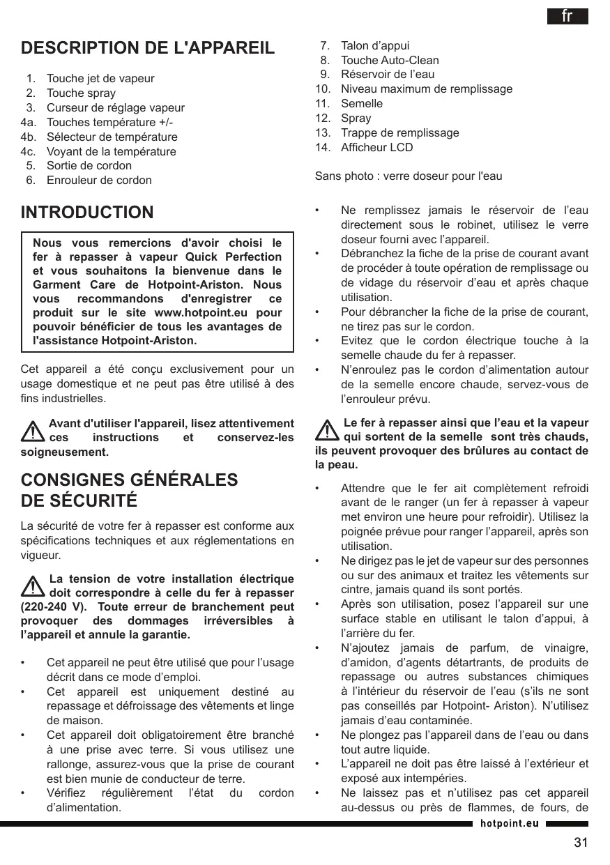 Le manuel d'utilisation peut être téléchargé sur le site officiel de HOTPOINT ou demandé auprès du service clientèle.