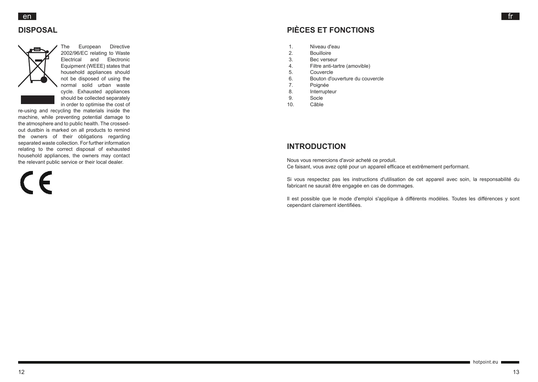 WK 22M AB0 - Bouilloire électrique HOTPOINT - Notice d'utilisation et mode d'emploi gratuit