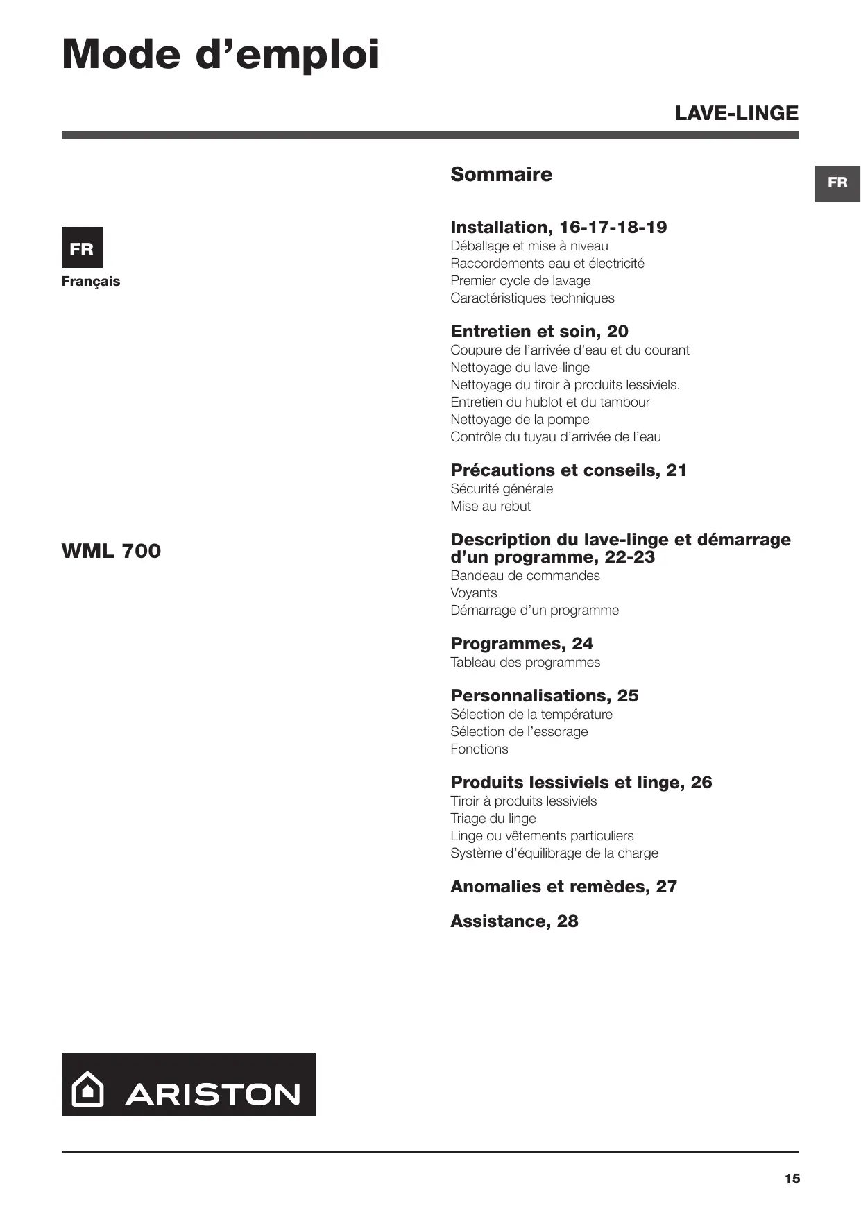 FOIRE AUX QUESTIONS - WML 700 EX.M HOTPOINT