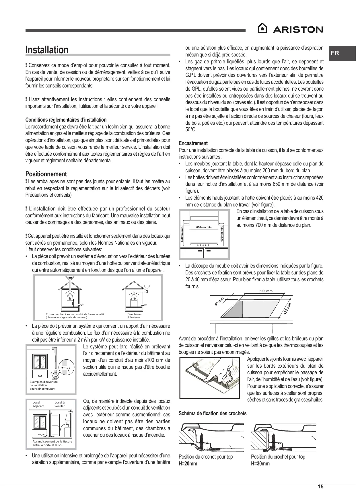 + La pièce doit prévoir un système d'évacuation vers l'extérieur des fumées de combustion, réalisé au moyen d'une hotte ou par ventilateur électrique qui entre automatiquement en fonction dès que l'on allume l'appareil.