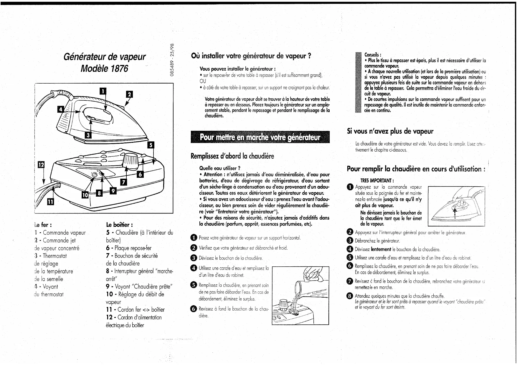 Retrouvez gratuitement la notice de l'appareil REPASSAGE CENTRALES VAPEUR GENERATEUR DE VAPEUR 1876 CALOR au format PDF.
