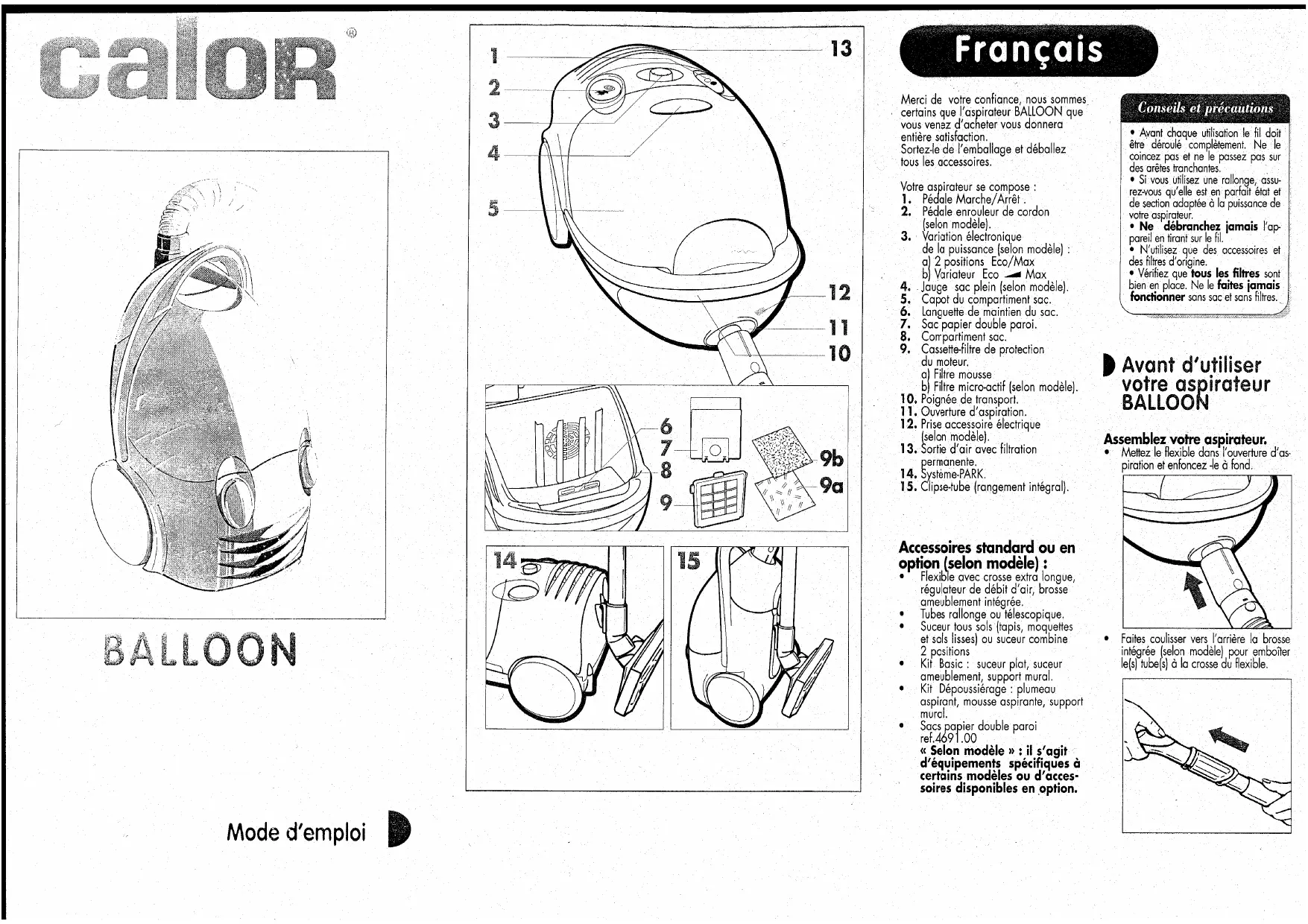 BALLOON - Aspirateur CALOR - Notice d'utilisation et mode d'emploi gratuit