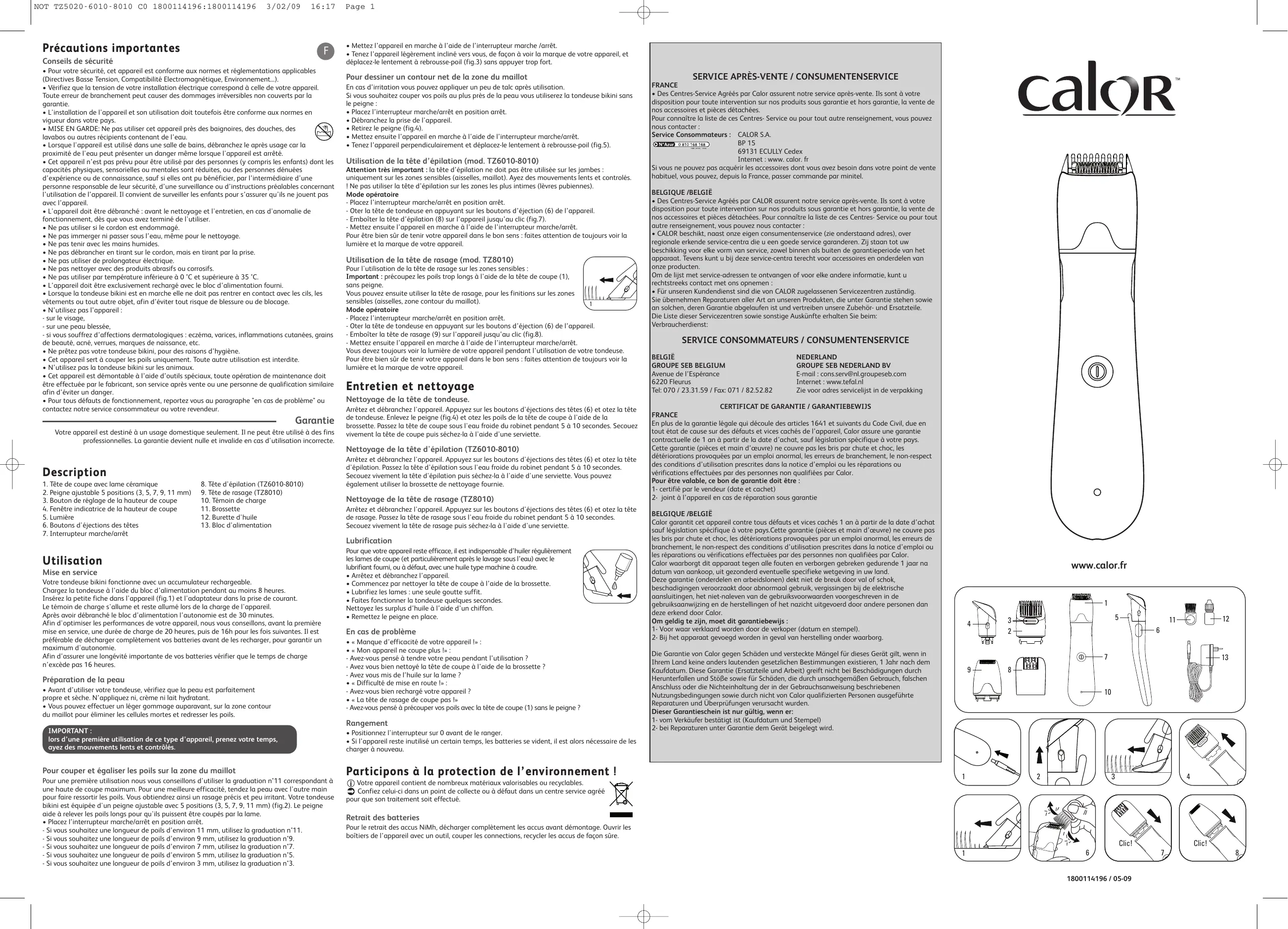 - « La tête de rasage de coupe pas !» - Avez-vous pensé à précouper vos poils avec la tête de coupe (1) sans le peigne ? Rangement IMPORTANT : lors d’une première utilisation de ce type d’appareil, prenez votre temps, ayez des mouvements lents et contrôlés. BELGIQUE /BELGIË