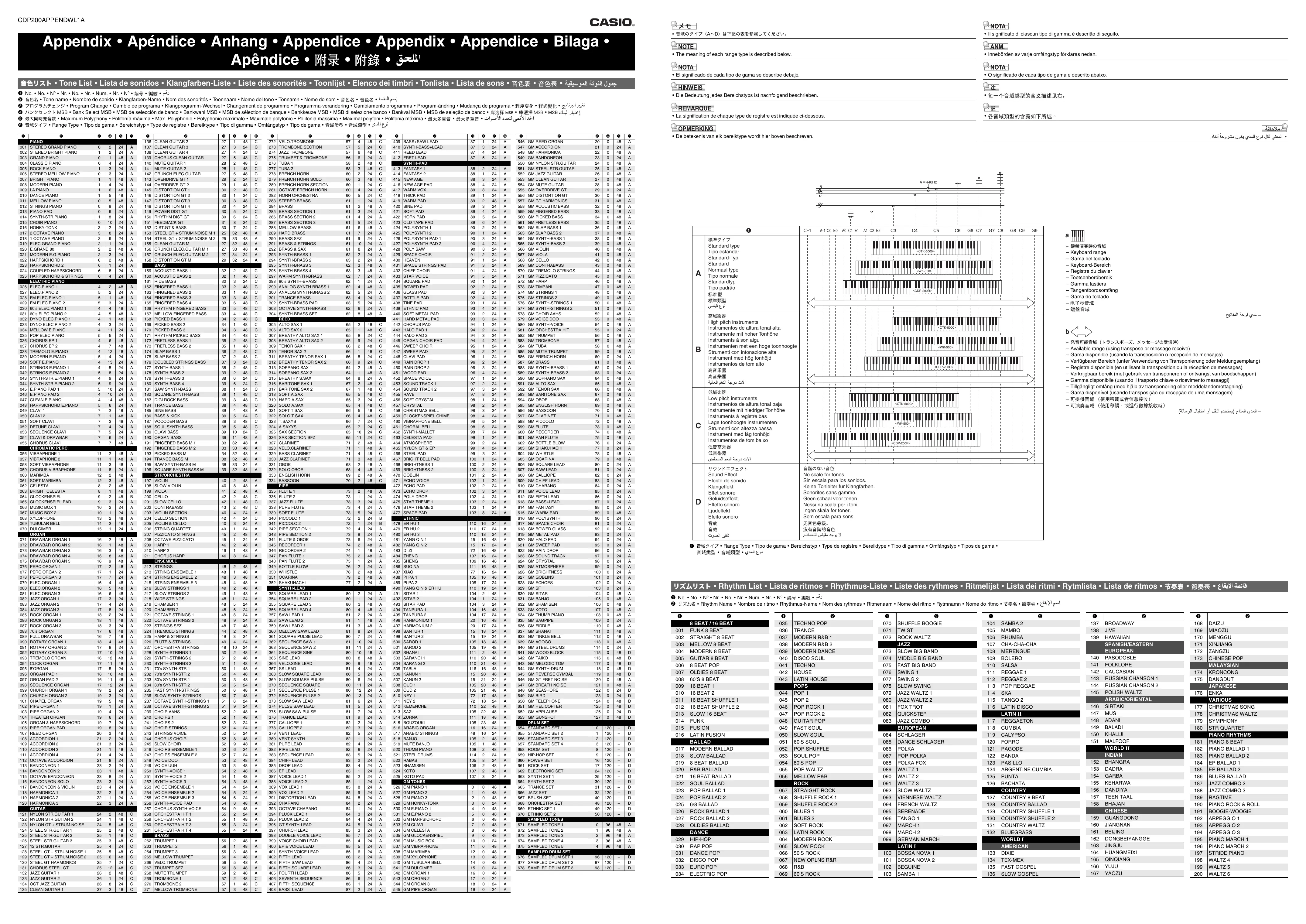CDP-200R - Piano numérique CASIO - Notice d'utilisation et mode d'emploi gratuit