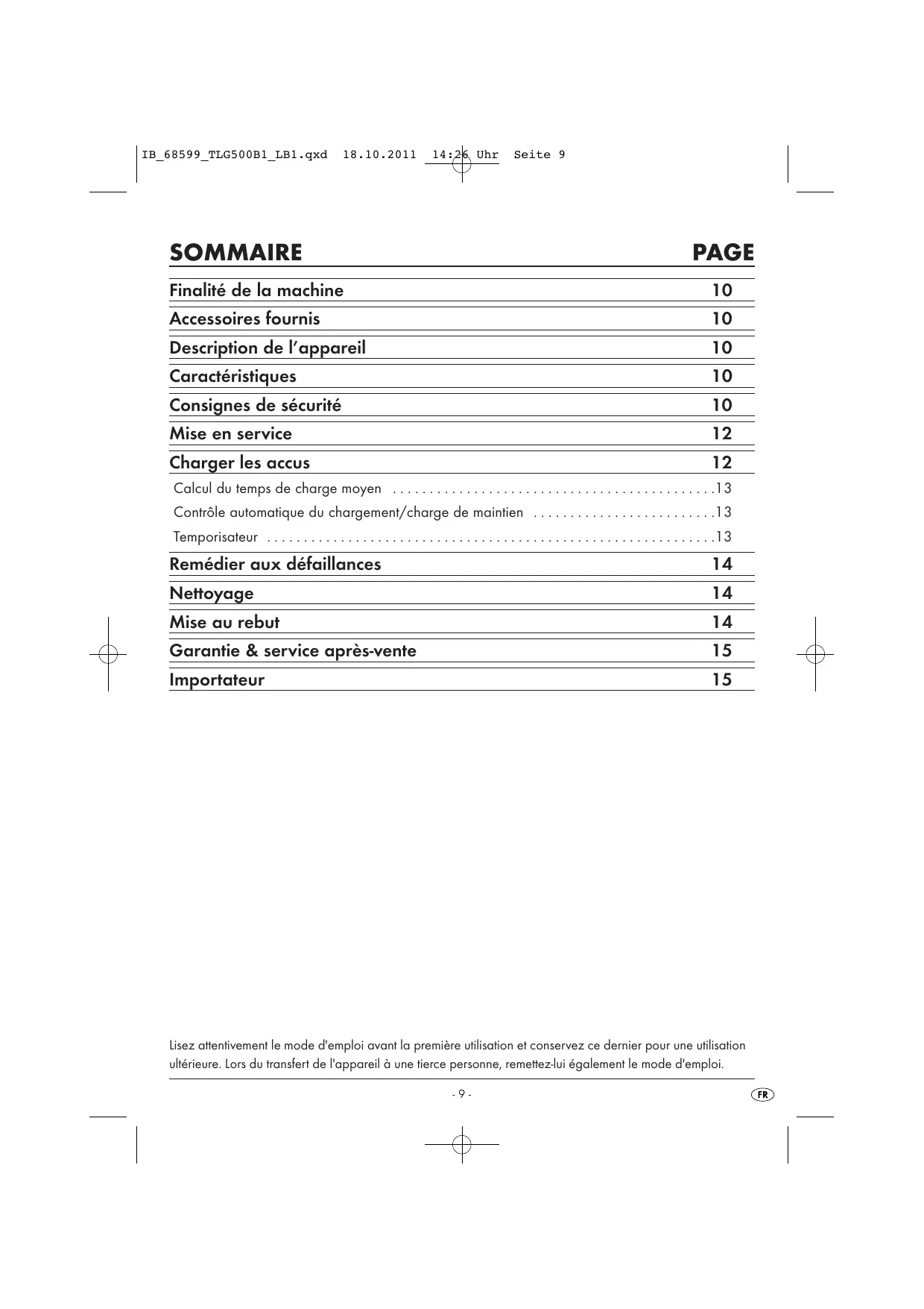 TLG 500 B1 - Chargeur de batterie TRONIC - Notice d'utilisation et mode d'emploi gratuit