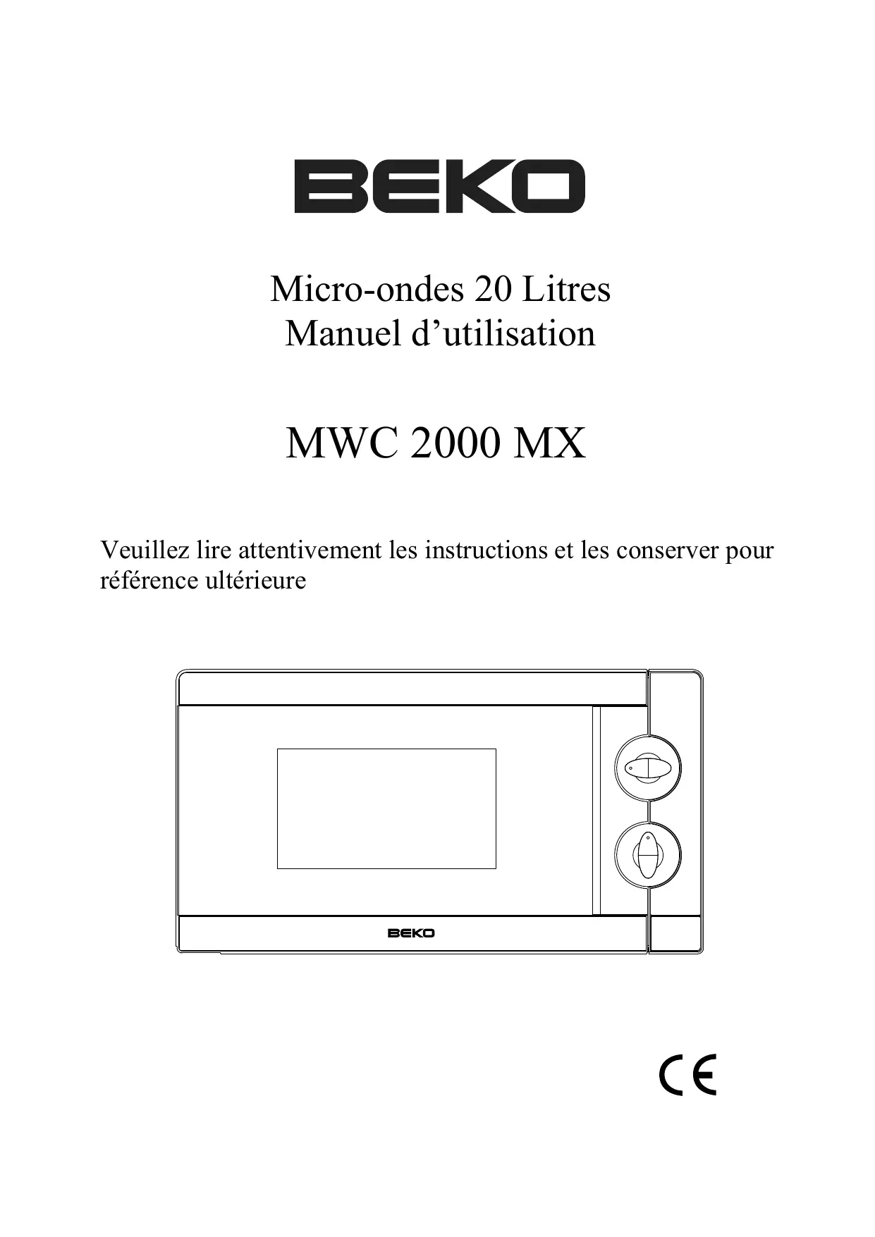 Micro-ondes 20 Litres Manuel d’utilisation MWC 2000 MX Veuillez lire attentivement les instructions et les conserver pour référence ultérieure