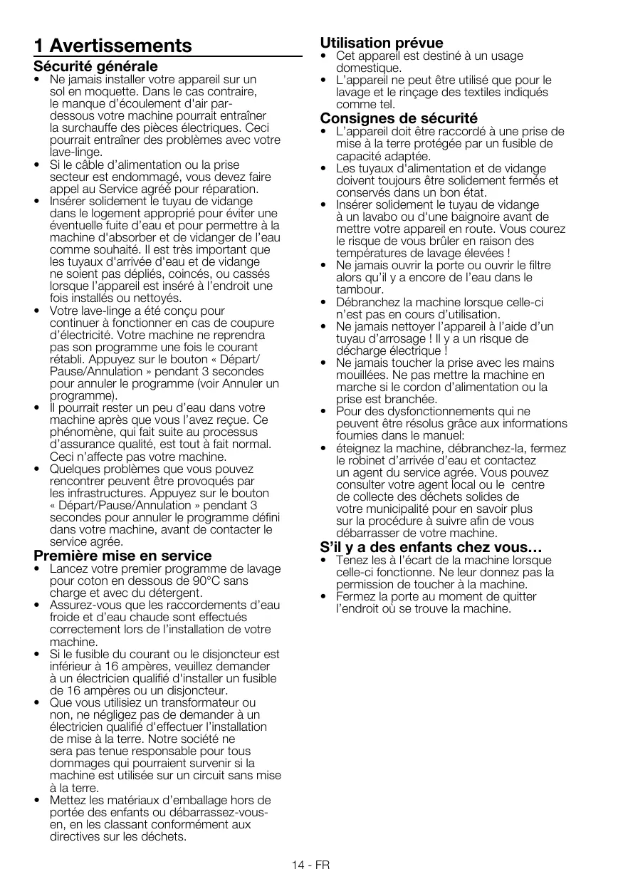 - L’appareil ne peut être utilisé que pour le lavage et le rinçage des textiles indiqués comme tel. Consignes de sécurité