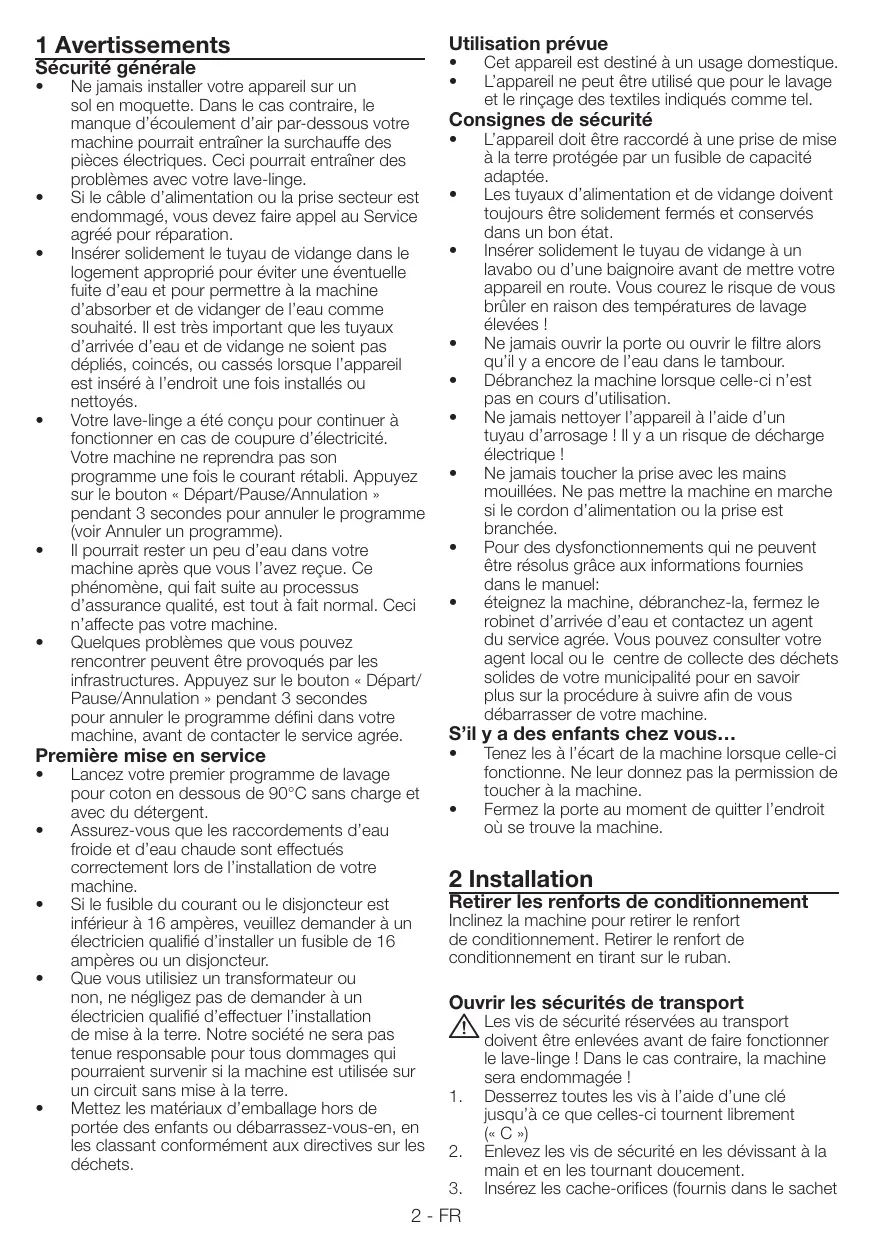 Il pourrait rester un peu d'eau dans votre machine après que vous l'avez regue. Ce phénomène, qui fait suite au processus d'assurance qualite, est tout a fait normal. Ceci n'affecte pas votre machine. - Quelques problèmes que vous pouvez rencontres peuvent être provoqués par les infrastructures. Appuyez sur le bouton « Départ/Pause/Annulation » pendant 3 secondes pour annuler le programme définis dans votre machine, avant de contacter le service/agree.