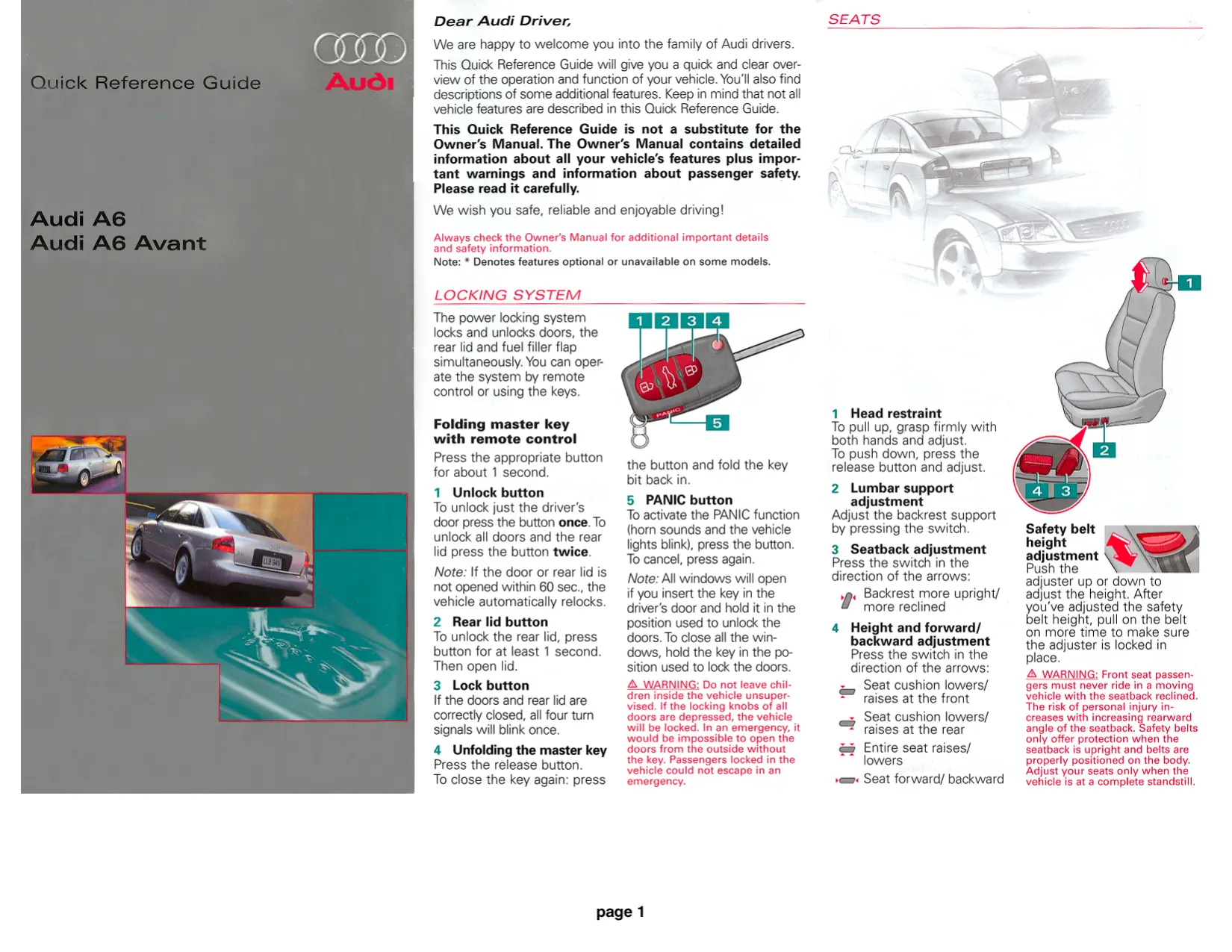 Retrouvez gratuitement la notice de l'appareil A6 AUDI au format PDF.