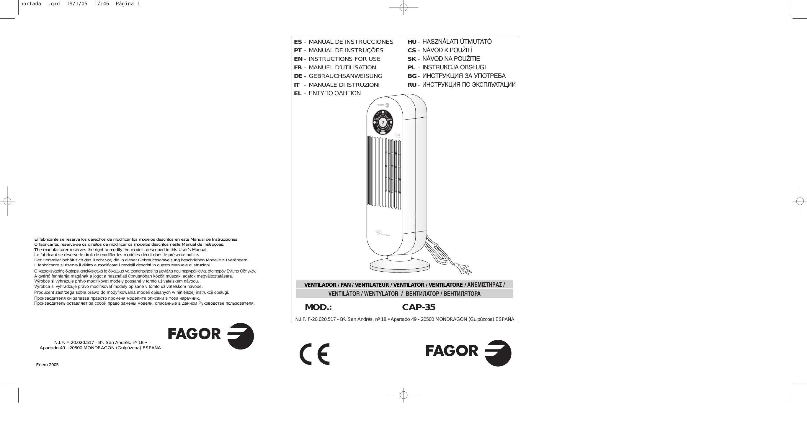 Retrouvez gratuitement la notice de l'appareil CAP-35I FAGOR au format PDF.