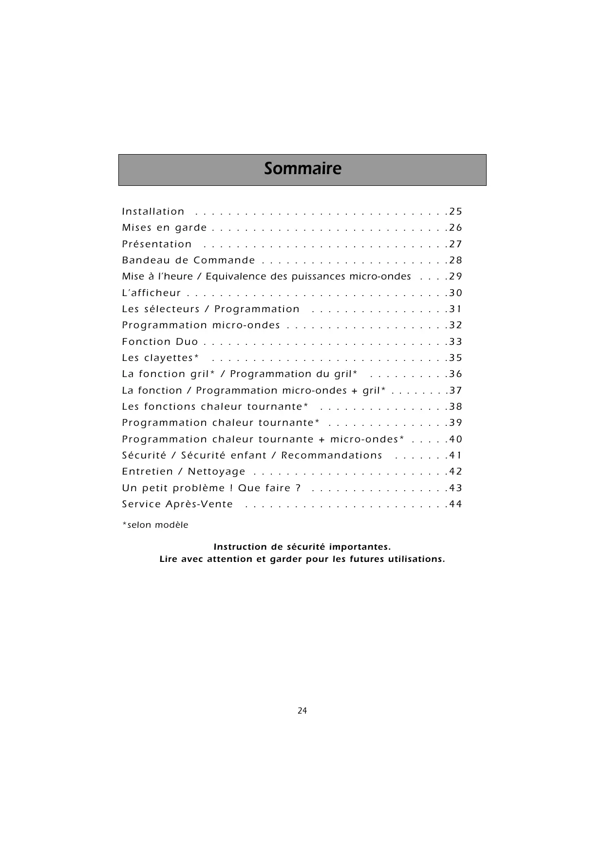 - Voiture apparéil est exclusivement destiné à un usage domestique pour la cuisson, le réchauffage ou la décongélation des alimentés. Le fabricant se dégage de toute responsabilité en cas d'utilisations non conformes.
