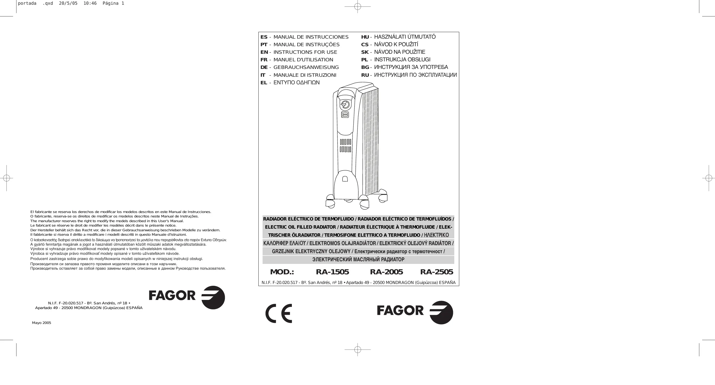 Retrouvez gratuitement la notice de l'appareil RA-1505 FAGOR au format PDF.