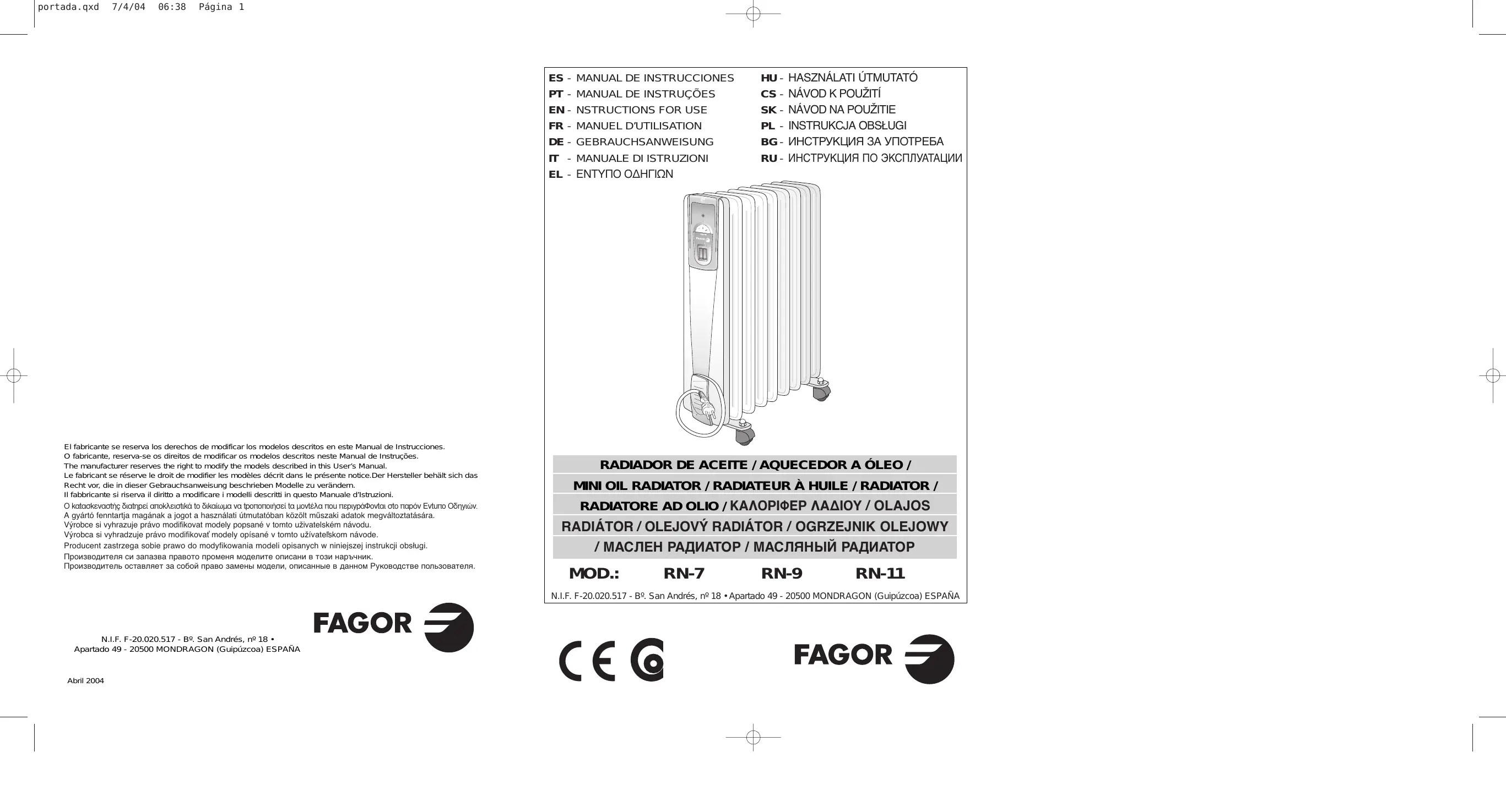 Retrouvez gratuitement la notice de l'appareil RN-11 FAGOR au format PDF.