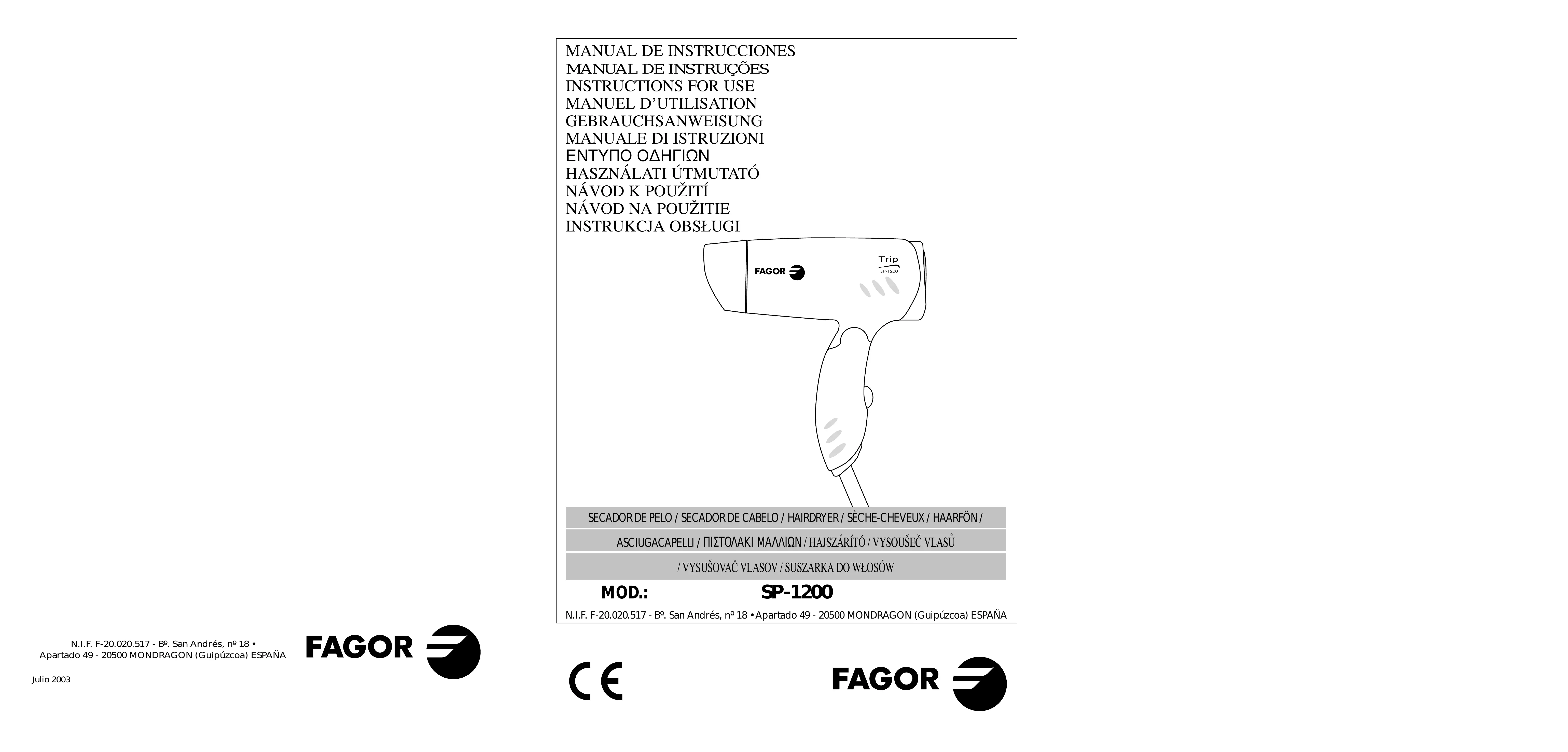 SP-1200 - Sèche cheveux FAGOR - Notice d'utilisation et mode d'emploi gratuit