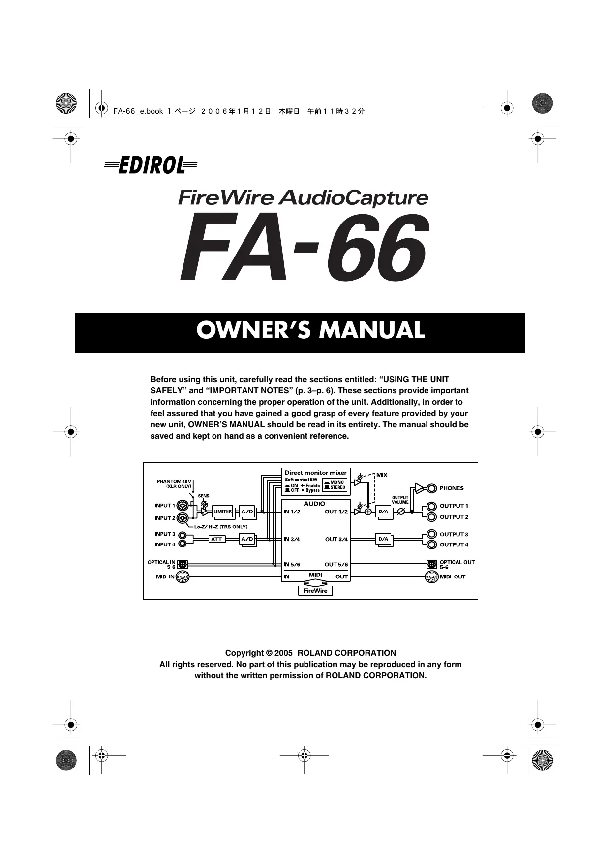 FA-66 - Interface audio ROLAND - Notice d'utilisation et mode d'emploi gratuit