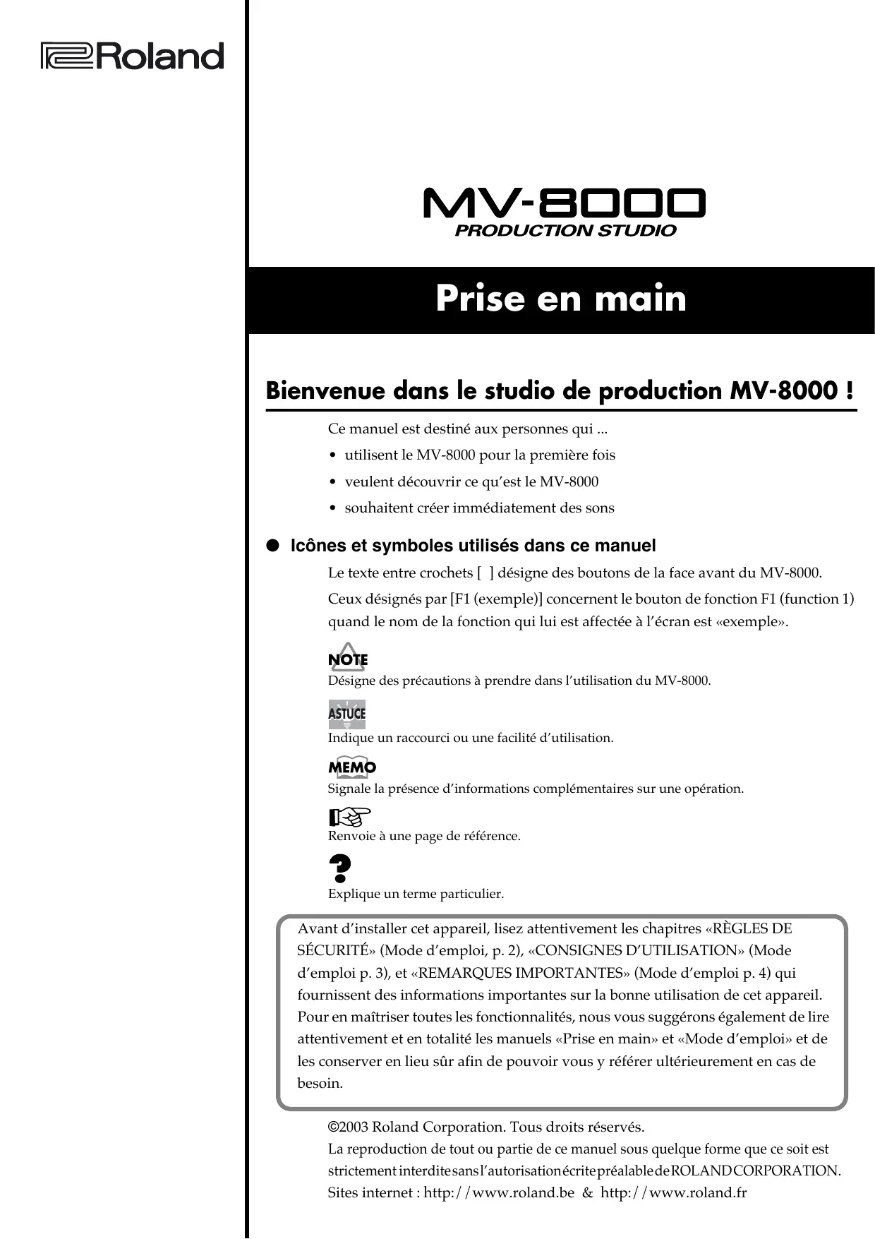Retrouvez gratuitement la notice de l'appareil MV-8000 ROLAND au format PDF.